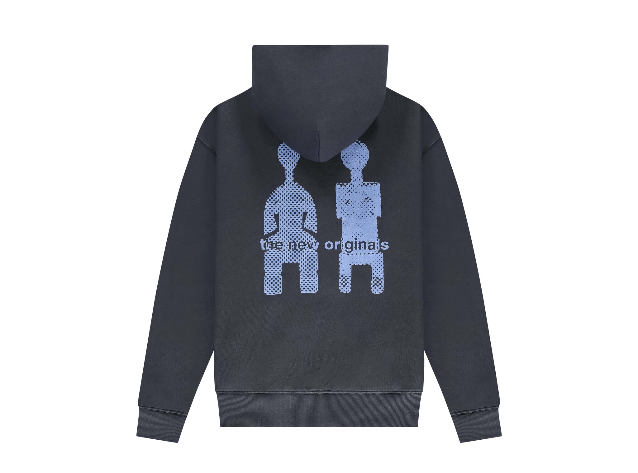 The 2 Figures Zip Up Hoodie in Black Oyster is a stylish and comfortable hoodie from The New Originals. Made of 100% cotton with an oversized fit. The hoodie features a zipper and is adorned with the signature 2 Figures artwork on the front and back in Serenity Blue, combined with The New Originals branding. Perfect for a casual and modern look.