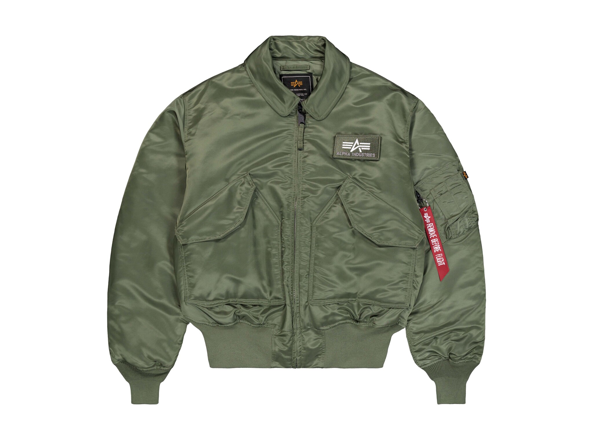 The Alpha Industries CWU 45 Heritage Bomber Jacket in Sage Green is a timeless classic, inspired by the original military flight jackets. Featuring the signature bomber silhouette with ribbed cuffs, waistband, and a sturdy zipper closure. Made from durable nylon with a comfortable polyester lining, perfect for everyday wear. Completed with the iconic ‘Remove Before Flight’ tag and functional pockets for an authentic look.