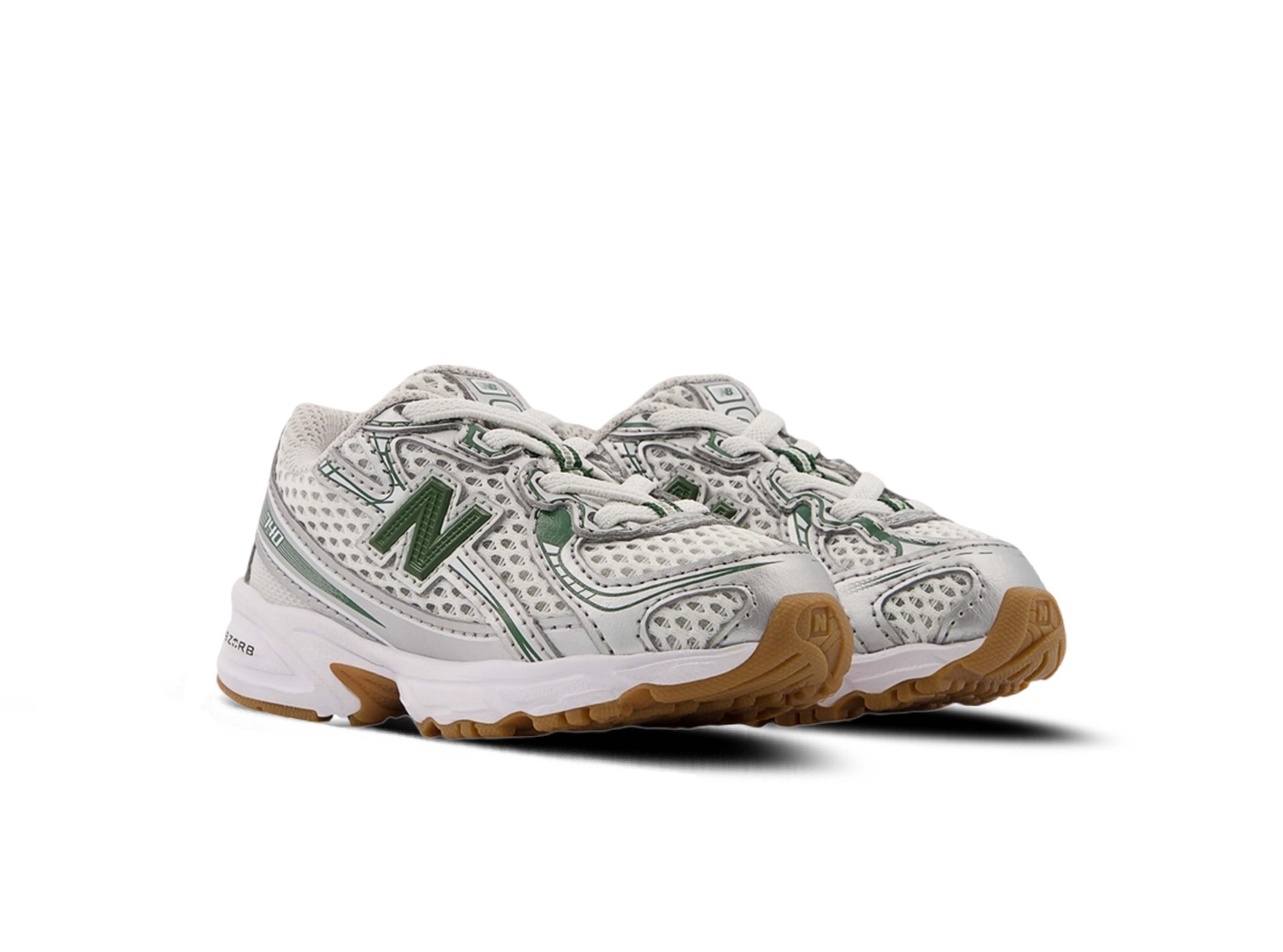 The New Balance IZ740 Green Silver Metallic (IZ740SF) is a playful and sporty sneaker for kids, inspired by vintage basketball silhouettes. Featuring a vibrant green base with eye-catching silver metallic accents, this model delivers standout style and everyday comfort. The breathable mesh upper with synthetic overlays ensures durability and flexibility, while the cushioned rubber sole provides grip and support for active play. A bold everyday sneaker for kids with a love for retro flair.
