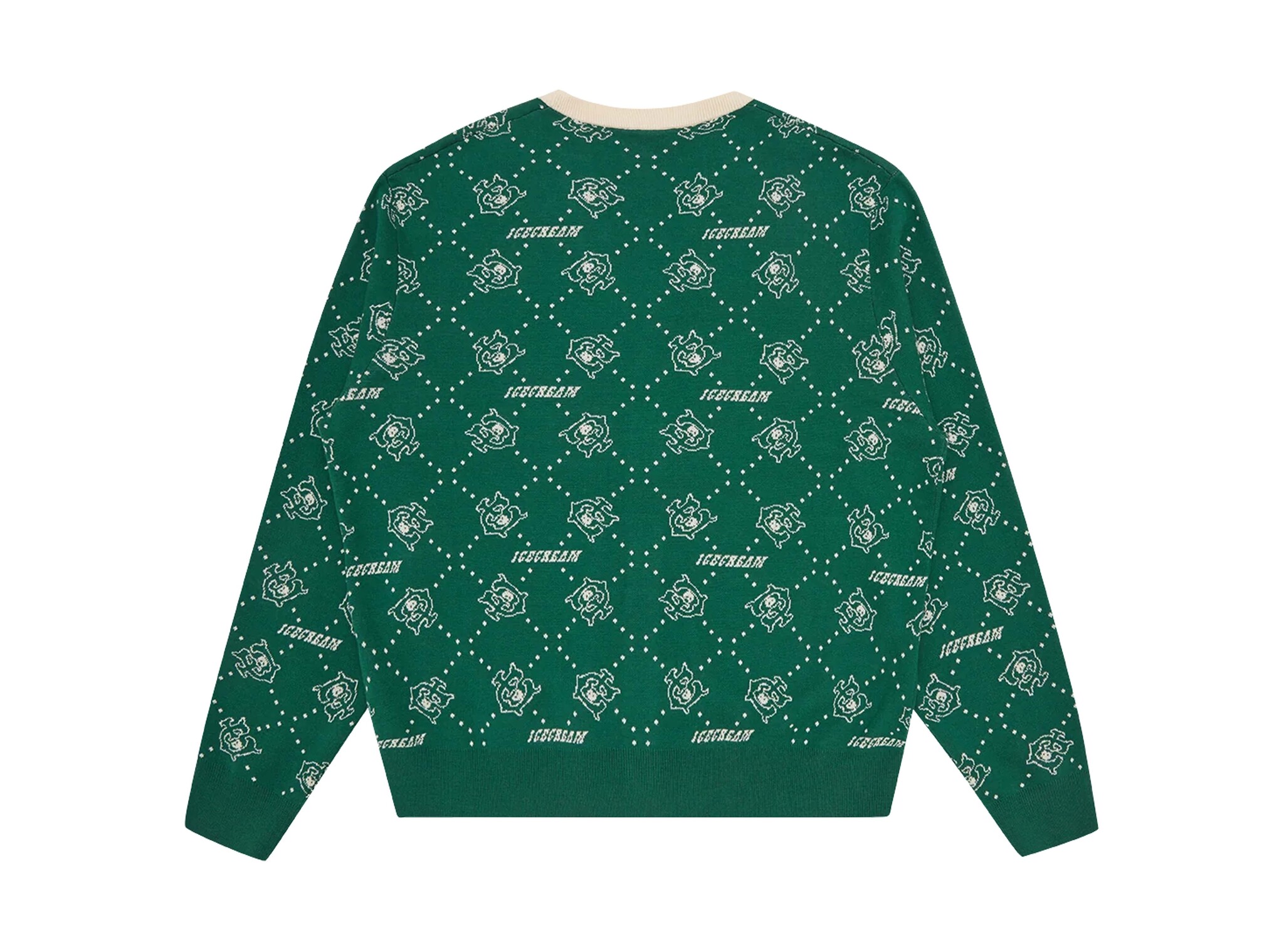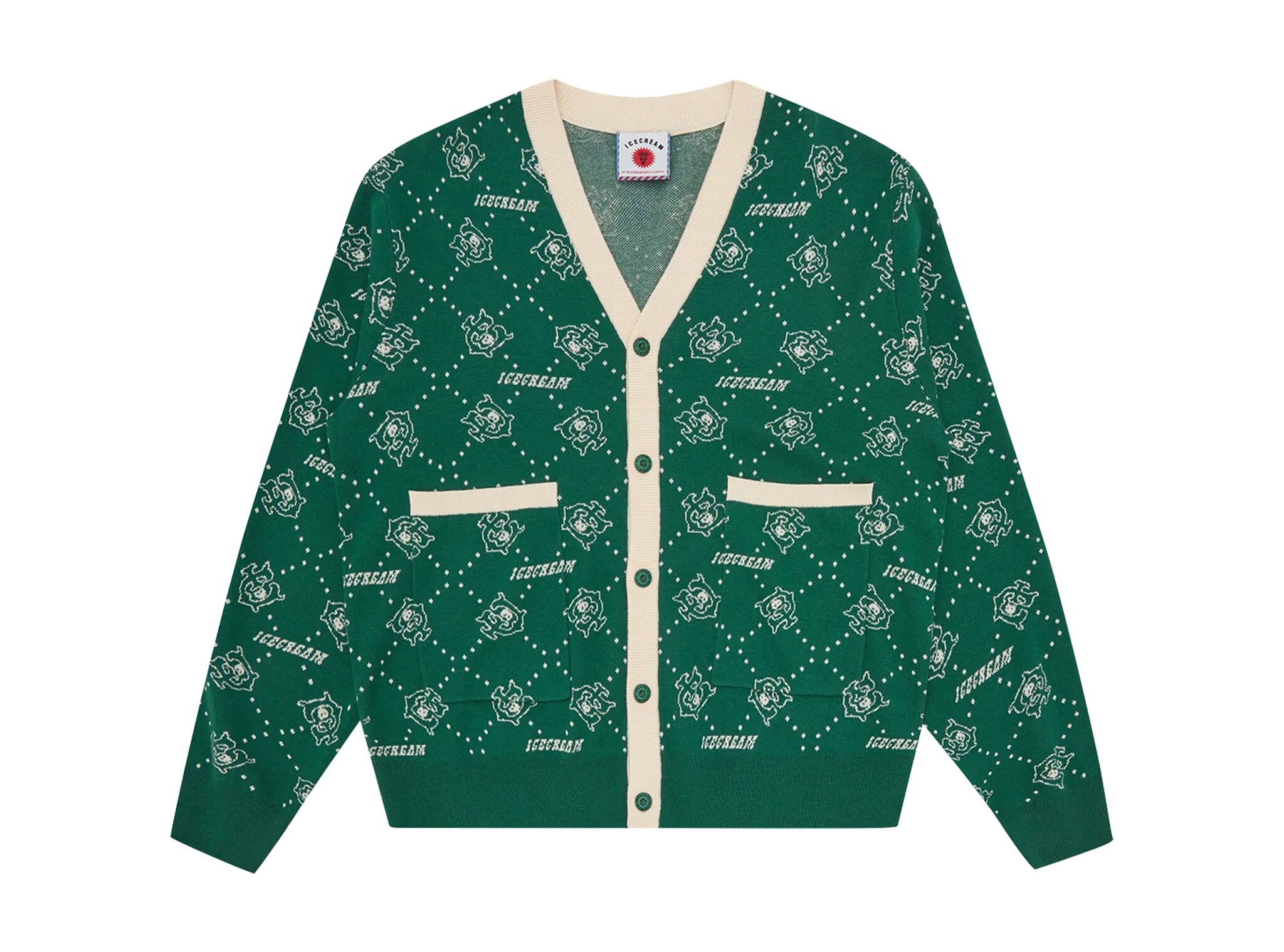 The ICECREAM Monogram Knit Cardigan in green combines comfort with a distinctive streetwear style. The all-over monogram pattern provides a unique and recognizable design, while the soft knitted fabric ensures maximum comfort. Perfect for casual outfits or layering.