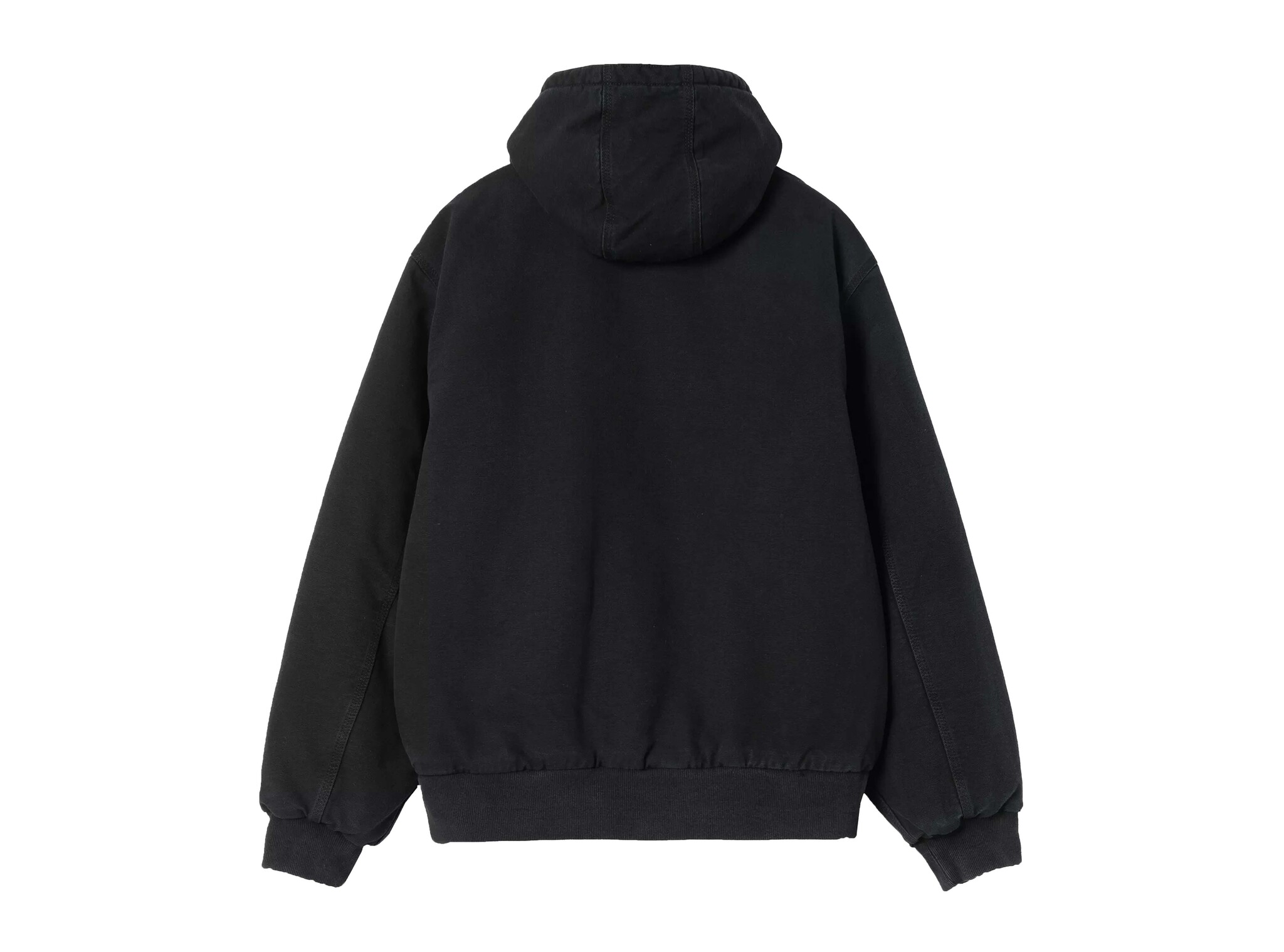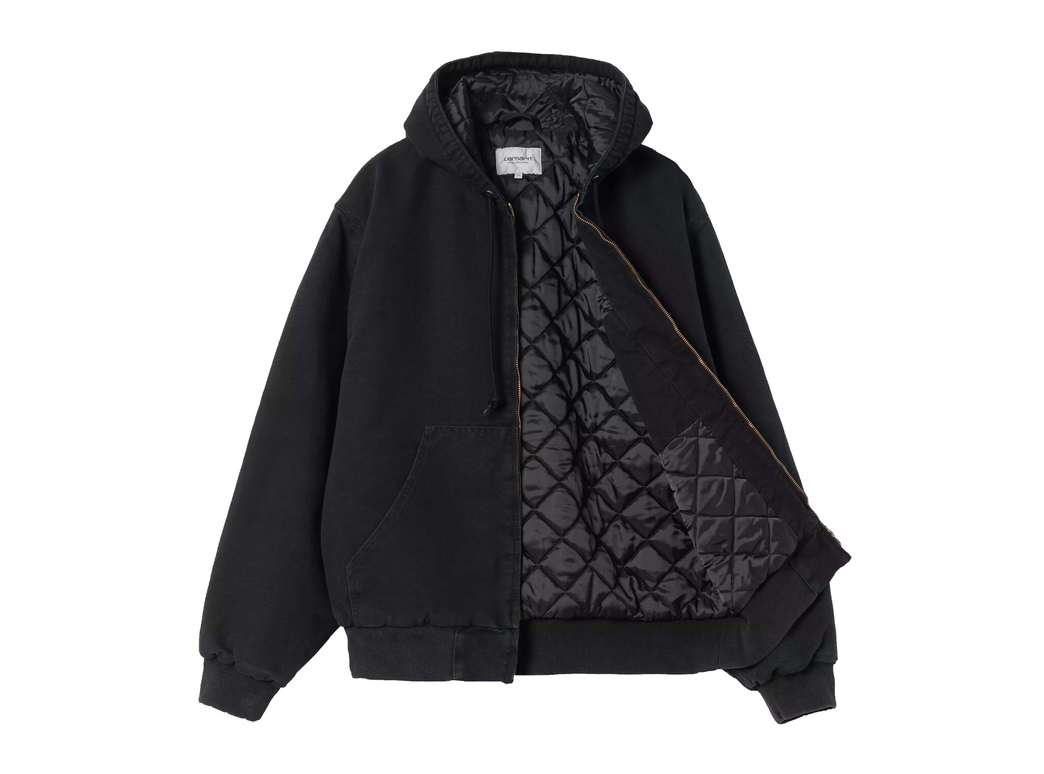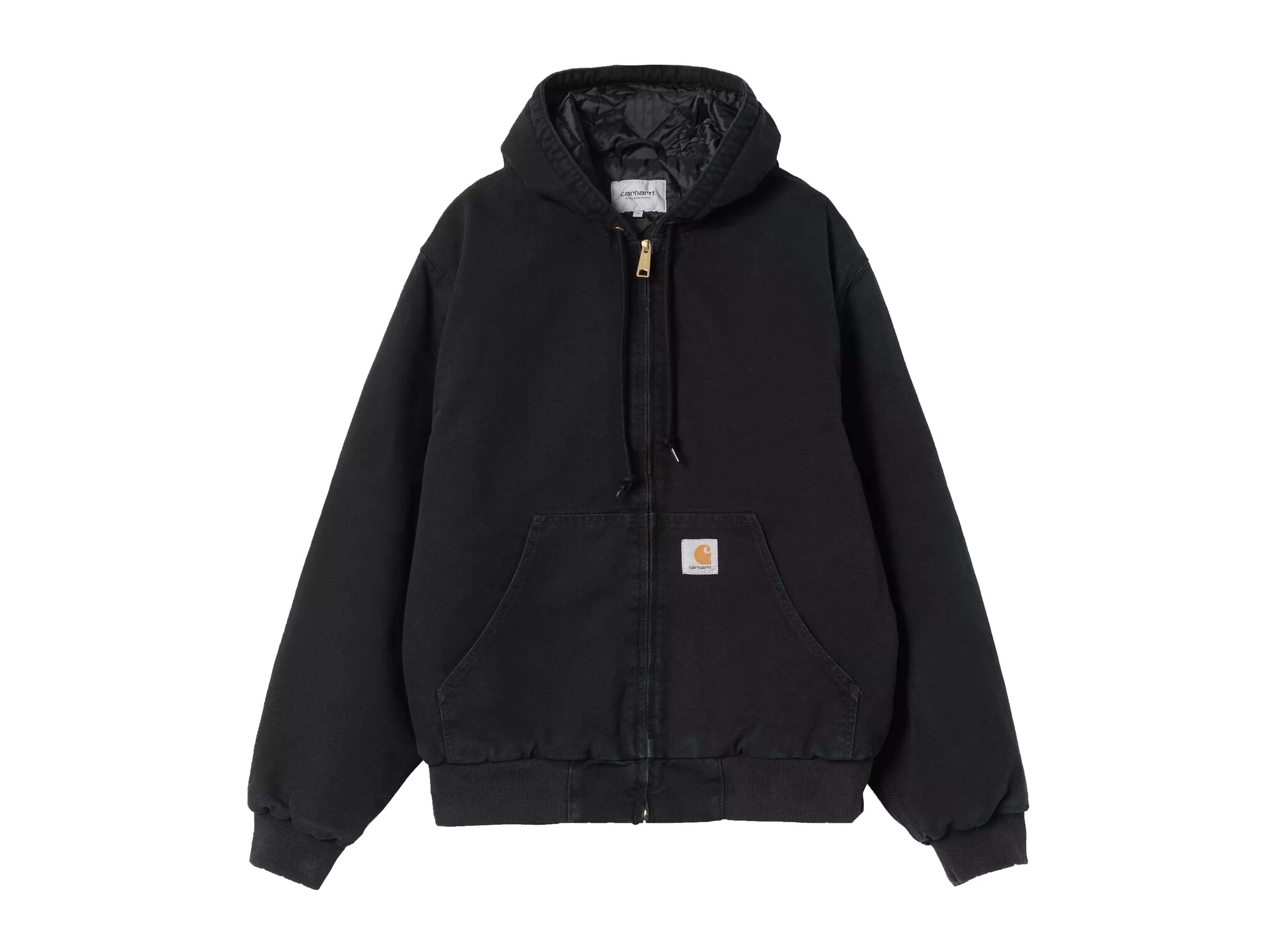The Carhartt WIP OG Active Jacket in Black Stone Canvas is an iconic workwear-inspired jacket that blends durability with style. Crafted from robust cotton canvas with a stone-washed finish for an authentic look, and quilt-lined for added warmth and comfort. Featuring a loose fit, adjustable hood, and kangaroo pockets, this jacket is a timeless piece for everyday wear.