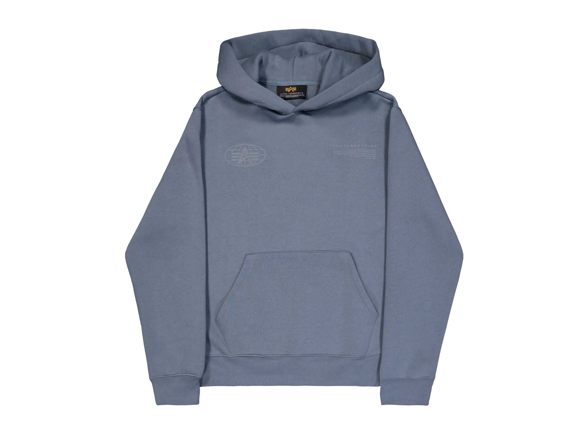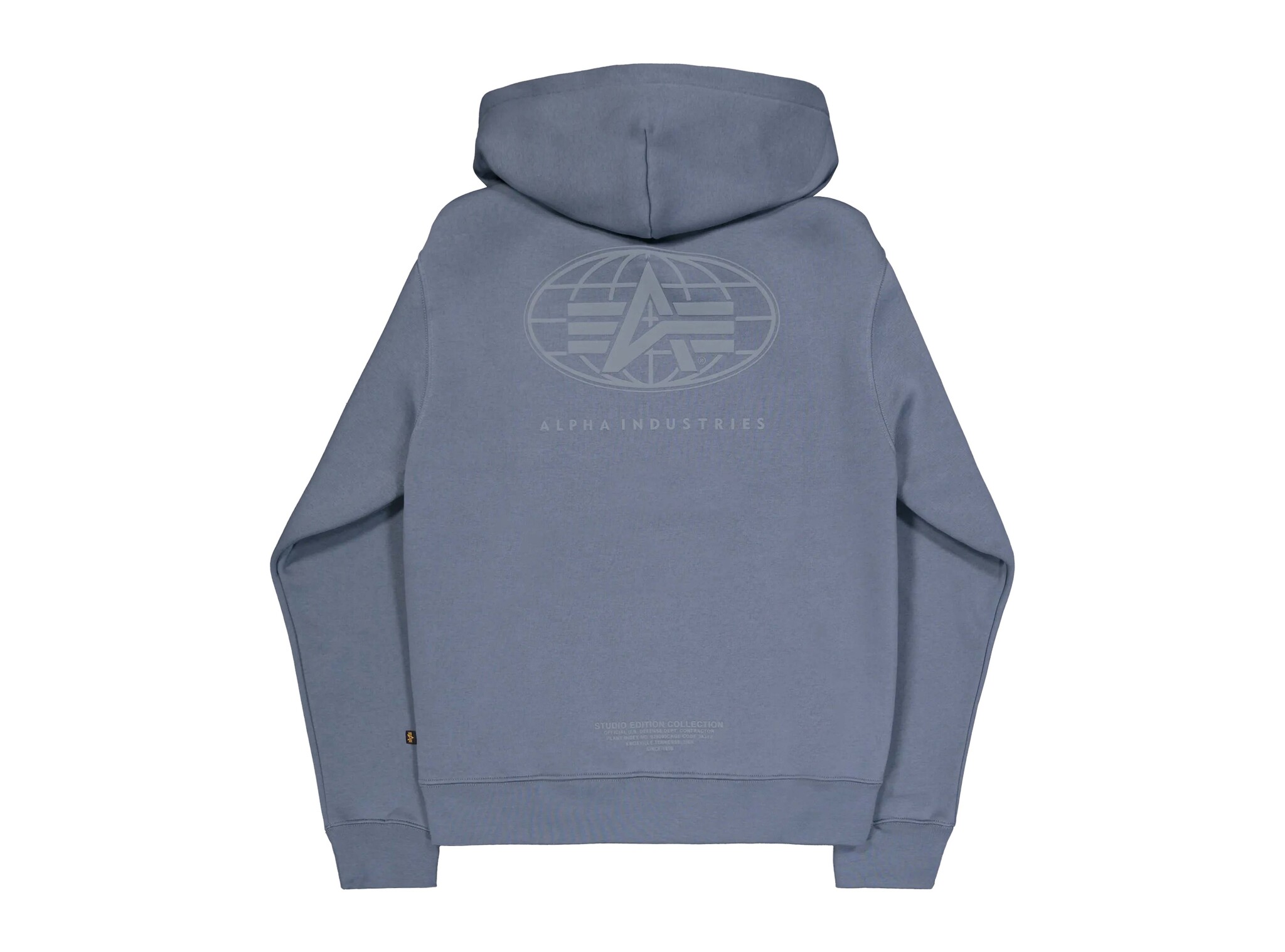 The Alpha Industries World Logo BP Hoodie in Denim Blue blends street-ready style with everyday comfort. Featuring a bold world map graphic on the back and subtle Alpha branding on the chest, this hoodie stands out in all the right ways. The cotton-blend fabric provides warmth and softness, while the adjustable hood and kangaroo pocket add function to form — ideal for daily wear.