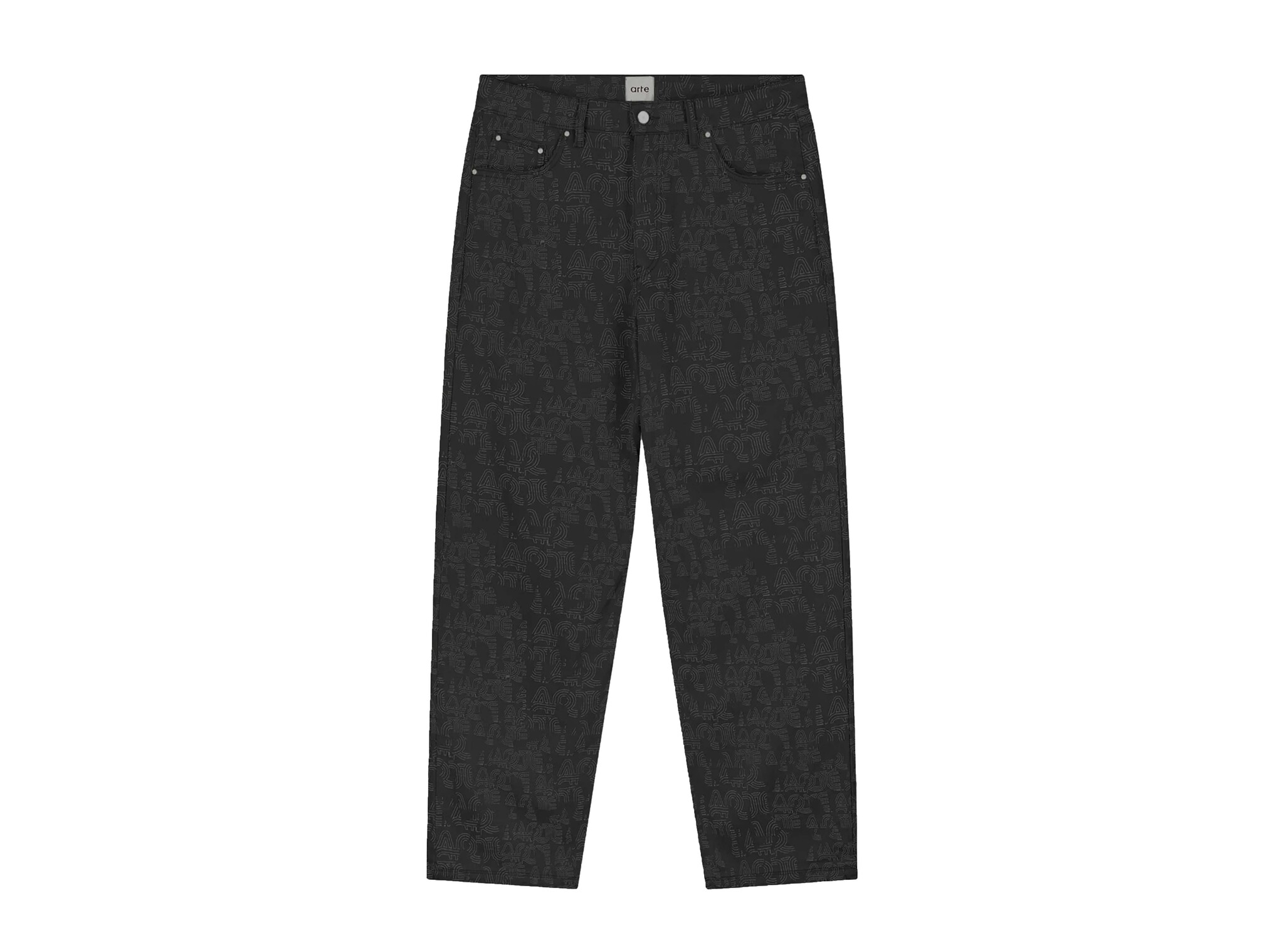 The Arte Antwerp Allover Arte Pants in Black blend comfort with a bold streetwear aesthetic. Featuring an allover Arte logo print and a relaxed fit, these pants are perfect for casual or urban outfits. Can be worn on their own or paired with the matching top for a complete look.