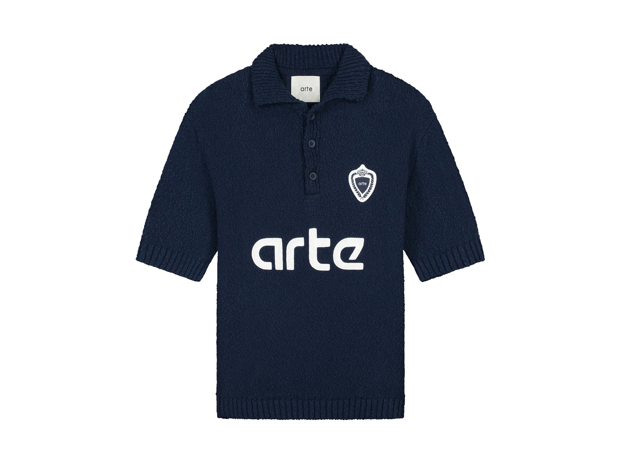 The Arte Antwerp Football Knit in blue merges sporty influences with a refined knitwear finish. Inspired by classic football jerseys, this knitted piece is crafted from premium cotton for optimal comfort. Perfect for a casual look with a touch of retro style.