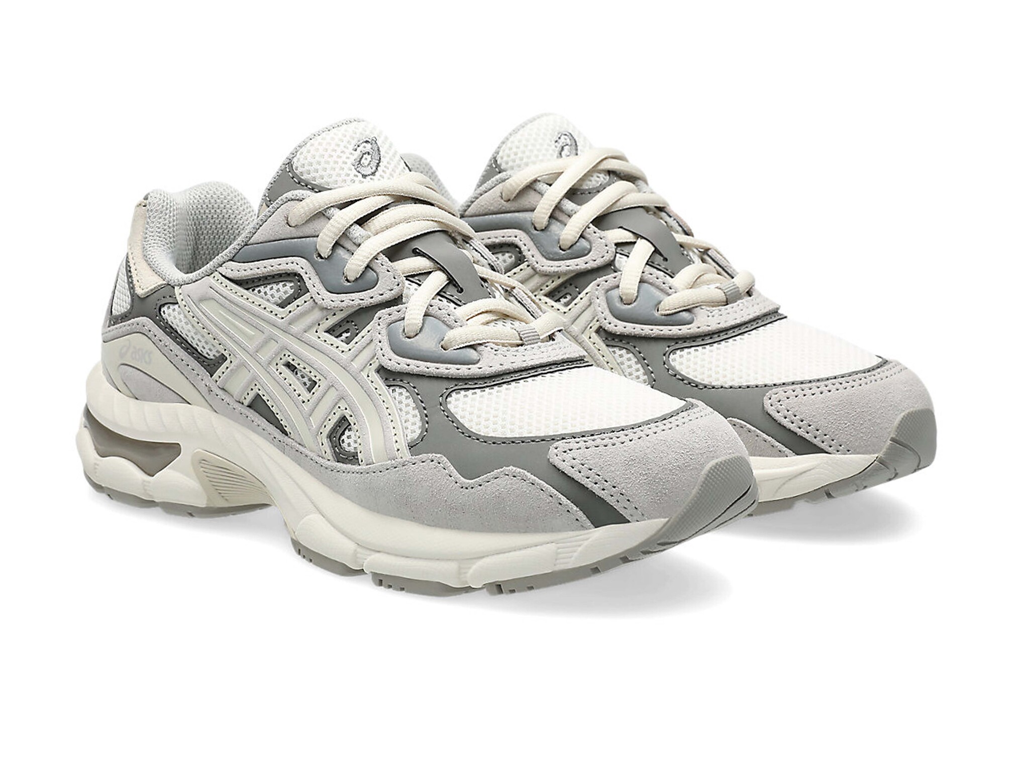 The ASICS GEL-NYC GS Cream Oyster Grey (1204A175 100) is the junior version of the popular adult model, inspired by early 2000s running silhouettes. The breathable mesh upper with synthetic overlays ensures comfort and stability, while the GEL™ cushioning in the midsole absorbs shock for all-day comfort. The neutral Cream base with Oyster Grey accents gives this sneaker a sleek and versatile look for everyday wear.