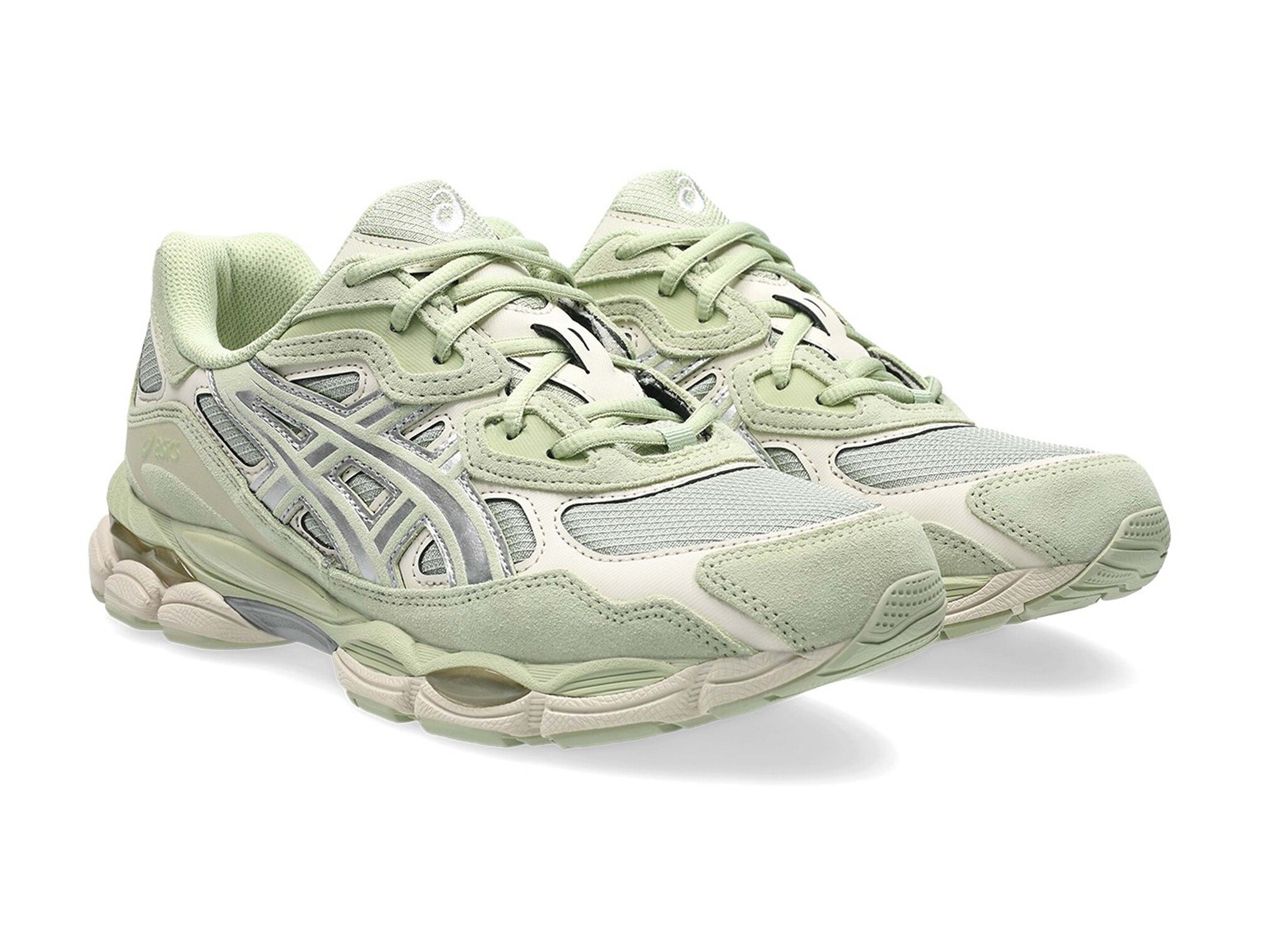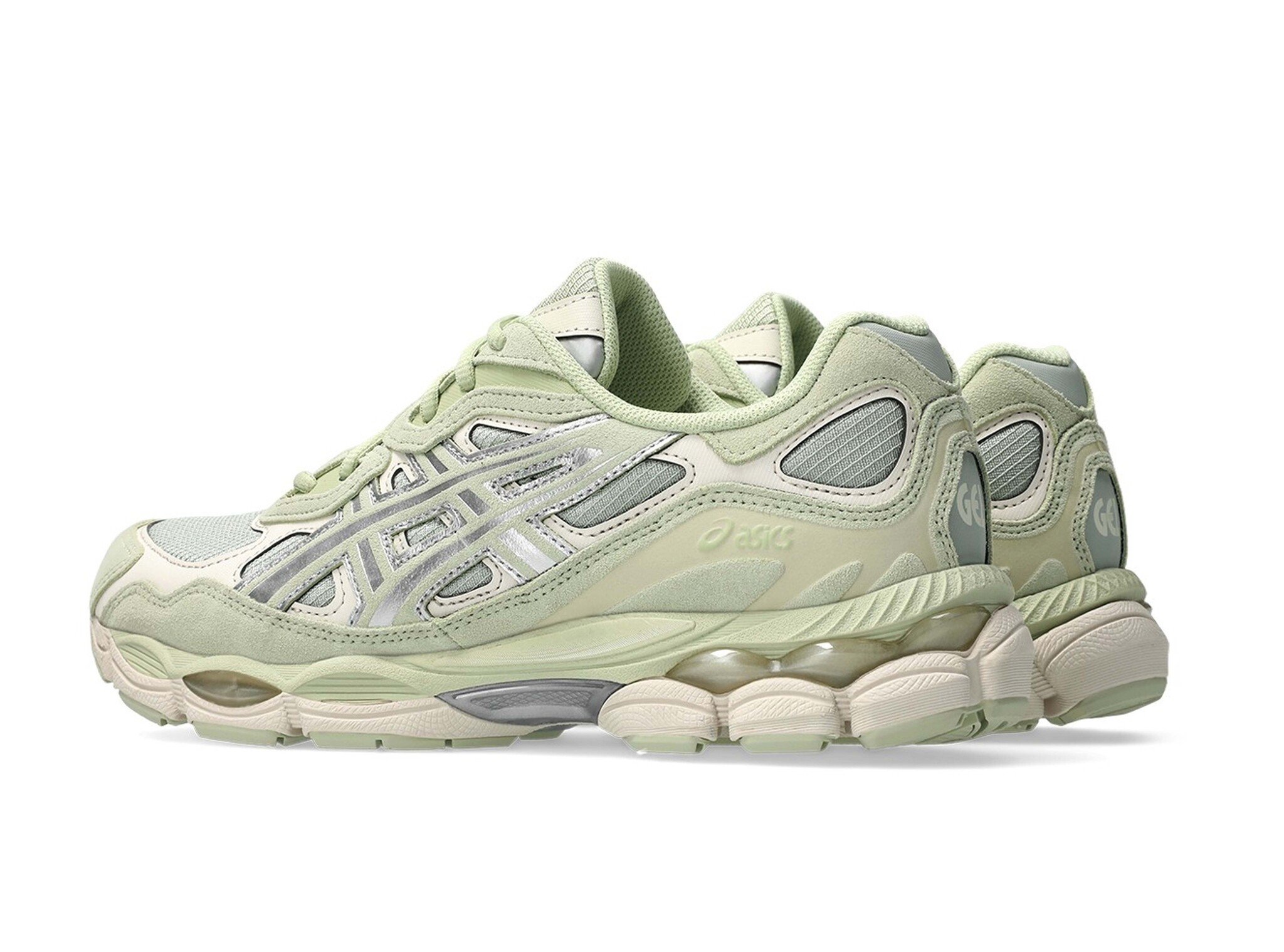 Product description: The ASICS GEL NYC in Sage Frost and Pure Silver is a heritage-inspired lifestyle sneaker that brings early 2000s running culture into the present day. The upper draws directly from the iconic GEL NIMBUS 3 silhouette and is enriched with embellishments from the GEL MC PLUS V design, combining breathable mesh base layers with durable synthetic leather overlays for a layered, archival look. The muted Sage Frost green tones are beautifully offset by Pure Silver accents, creating a sophisticated and nature-inspired colourway that stands out effortlessly. Underfoot, the GEL CUMULUS 16 tooling system is paired with signature GEL technology cushioning inserts, delivering advanced shock absorption and all-day comfort. A grippy rubber outsole with strategic traction zones ensures reliable grip on any surface. A refined unisex sneaker that blends retro running DNA with modern lifestyle versatility, perfect for city streets and everyday wear.