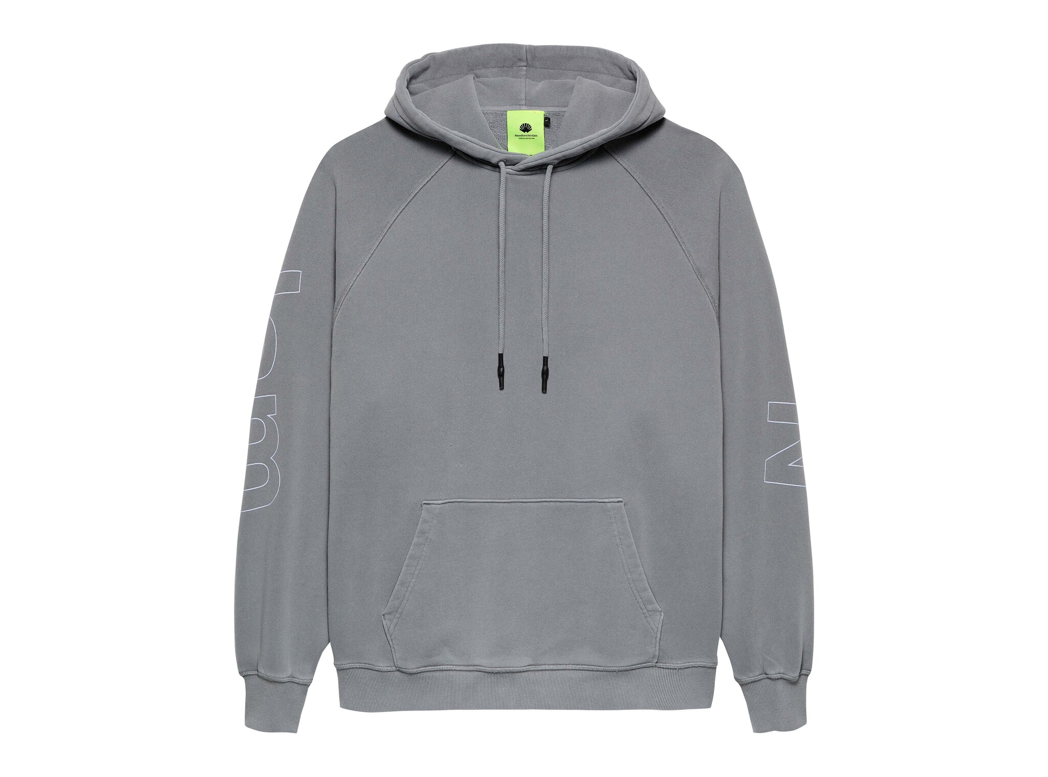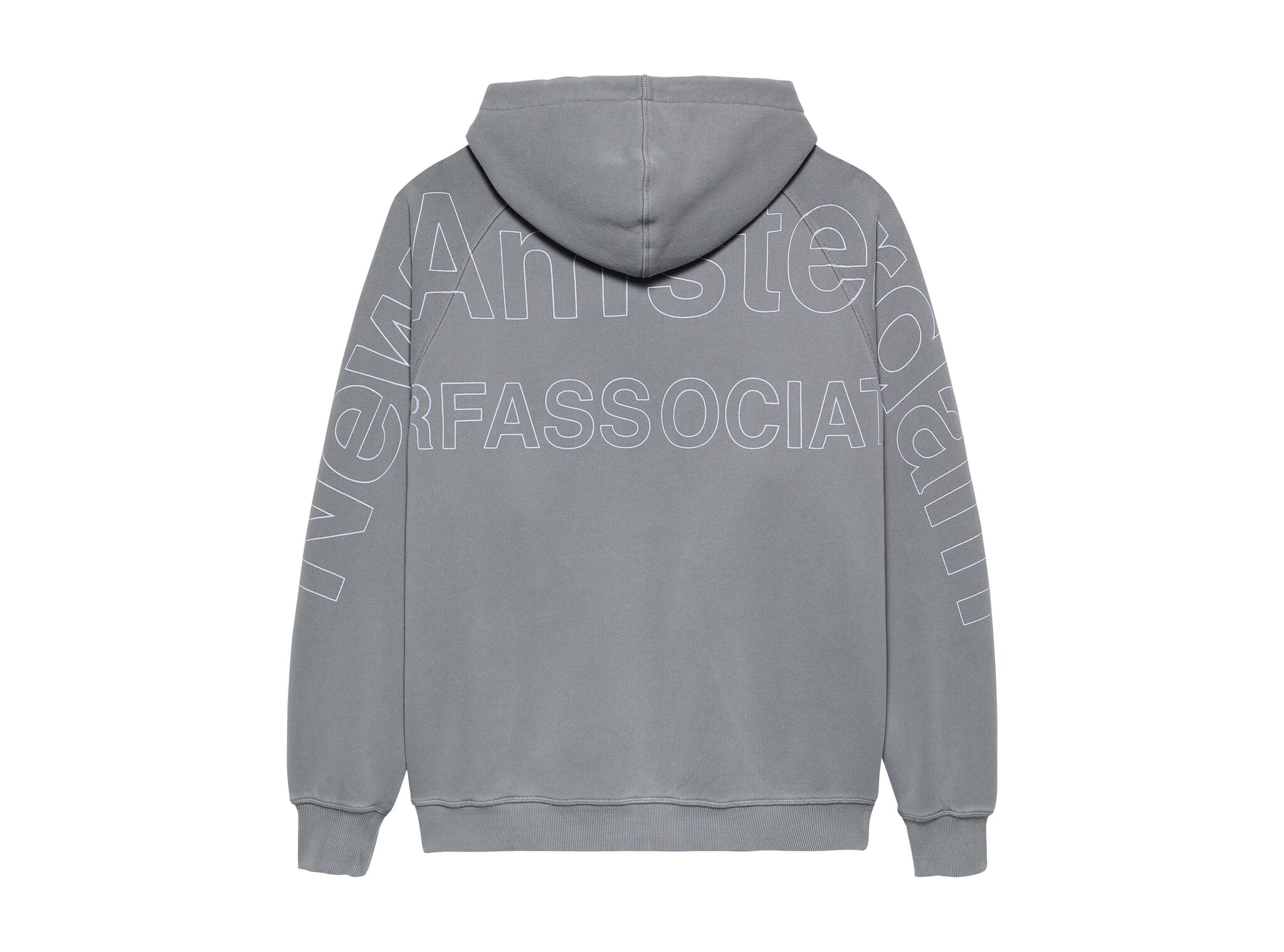 The New Amsterdam Surf Association Logo Line Hoodie in Snow Grey with white detailing delivers clean aesthetics and cozy comfort. Featuring the signature logo printed on the front and back, this hoodie is crafted from soft cotton and comes with a drawstring hood and kangaroo pocket. A versatile piece that works great for layering or as a statement on its own.