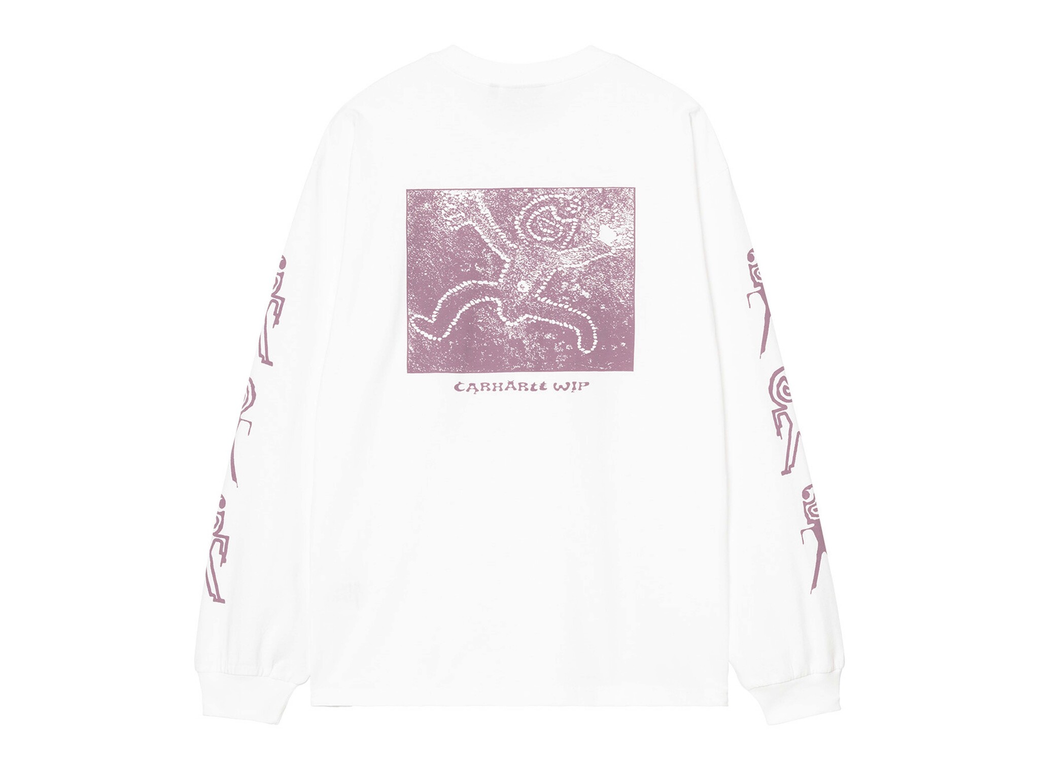 The Carhartt WIP L/S Terrestrial T-Shirt in White / Pink Fog is a bold long sleeve tee blending art and streetwear. Made from soft organic cotton and cut in a relaxed, loose fit, this shirt features graphic prints on the chest, back, and sleeves — inspired by extraterrestrial landscapes and futuristic aesthetics. A true statement piece for those who want their wardrobe to stand out with Carhartt WIP’s distinctive edge.