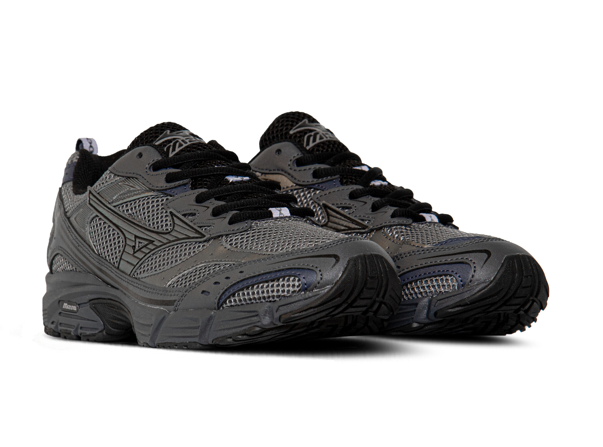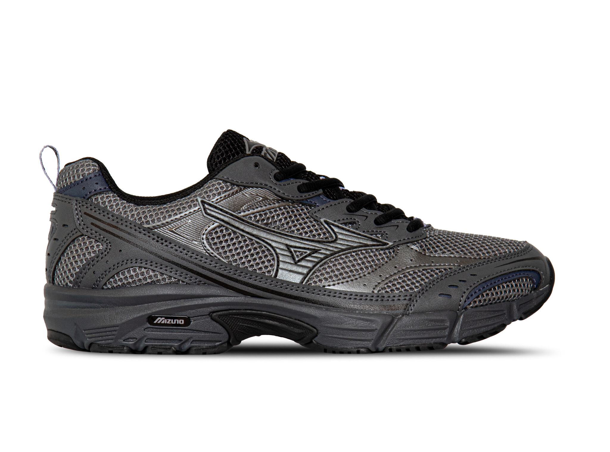 The Mizuno MXR in “Quiet Shade / Silver / Iron Gate” is a unisex sneaker combining early-2000s retro running aesthetics with modern comfort tech. The upper merges breathable mesh with metallic silver overlays, detailed eyestay prints, and custom tapes for an eye-catching, stylish look . The U4icX midsole delivers lightweight cushioning with high rebound, complemented by a durable rubber outsole for reliable street grip.
