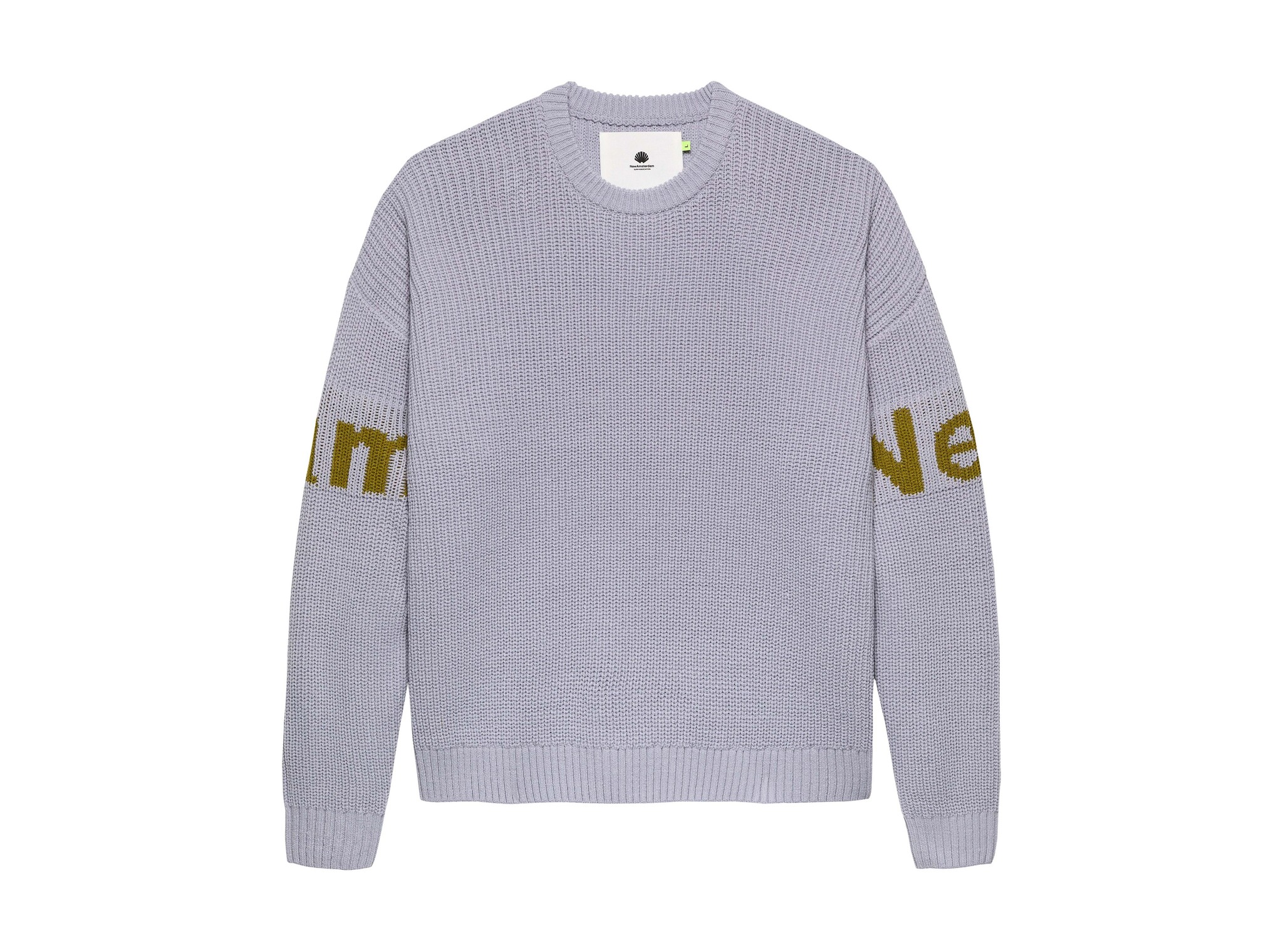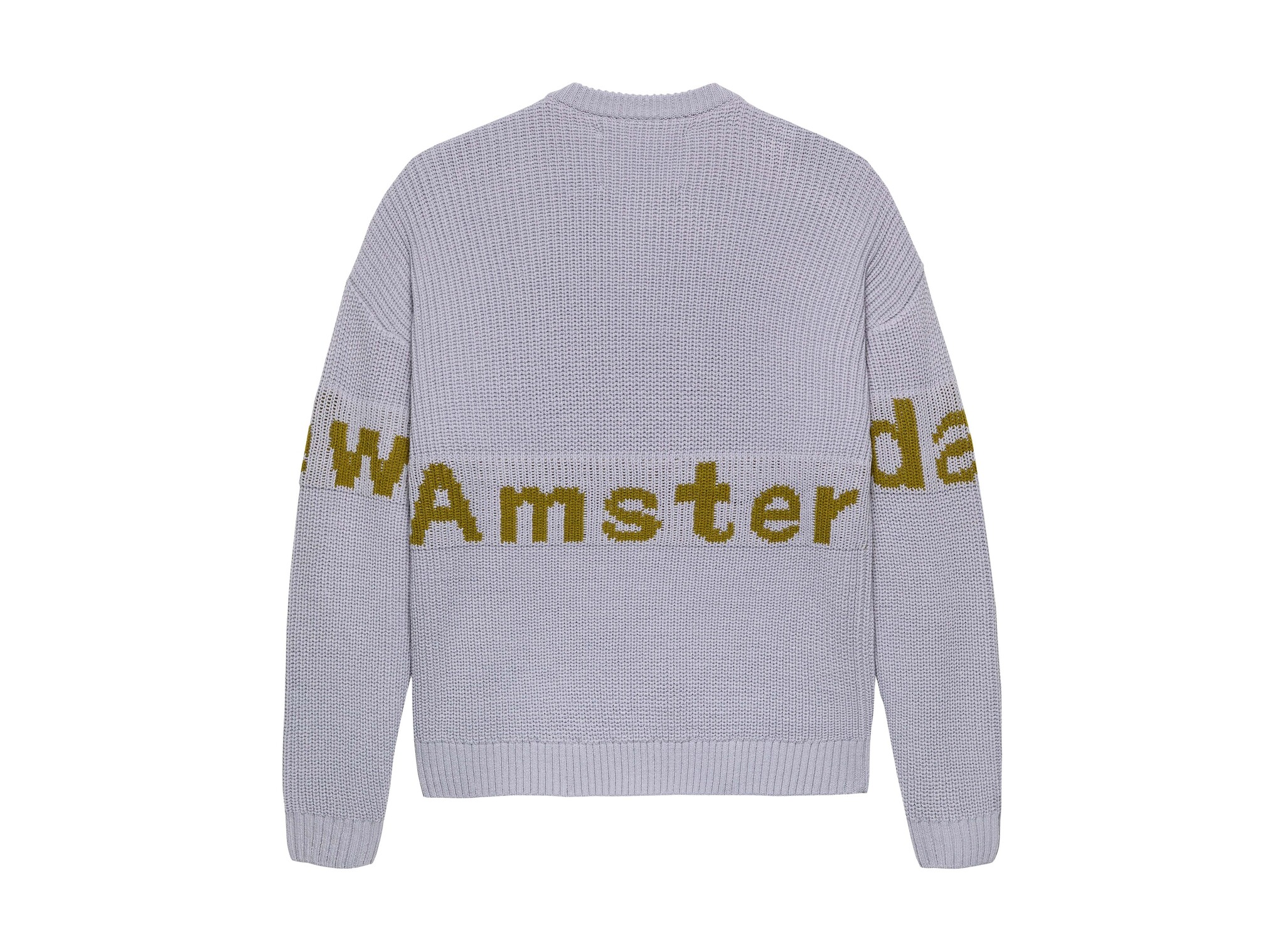 The New Amsterdam Surf Association Name Crew Knit in Sea Fog Moss is a modern knit sweater with a minimalist yet distinctive look. The muted greenish-grey tone offers a natural aesthetic, while the knitted logo on the chest adds subtle branding. Made from 100% cotton for breathable comfort — perfect for layering or wearing on its own during cooler days.