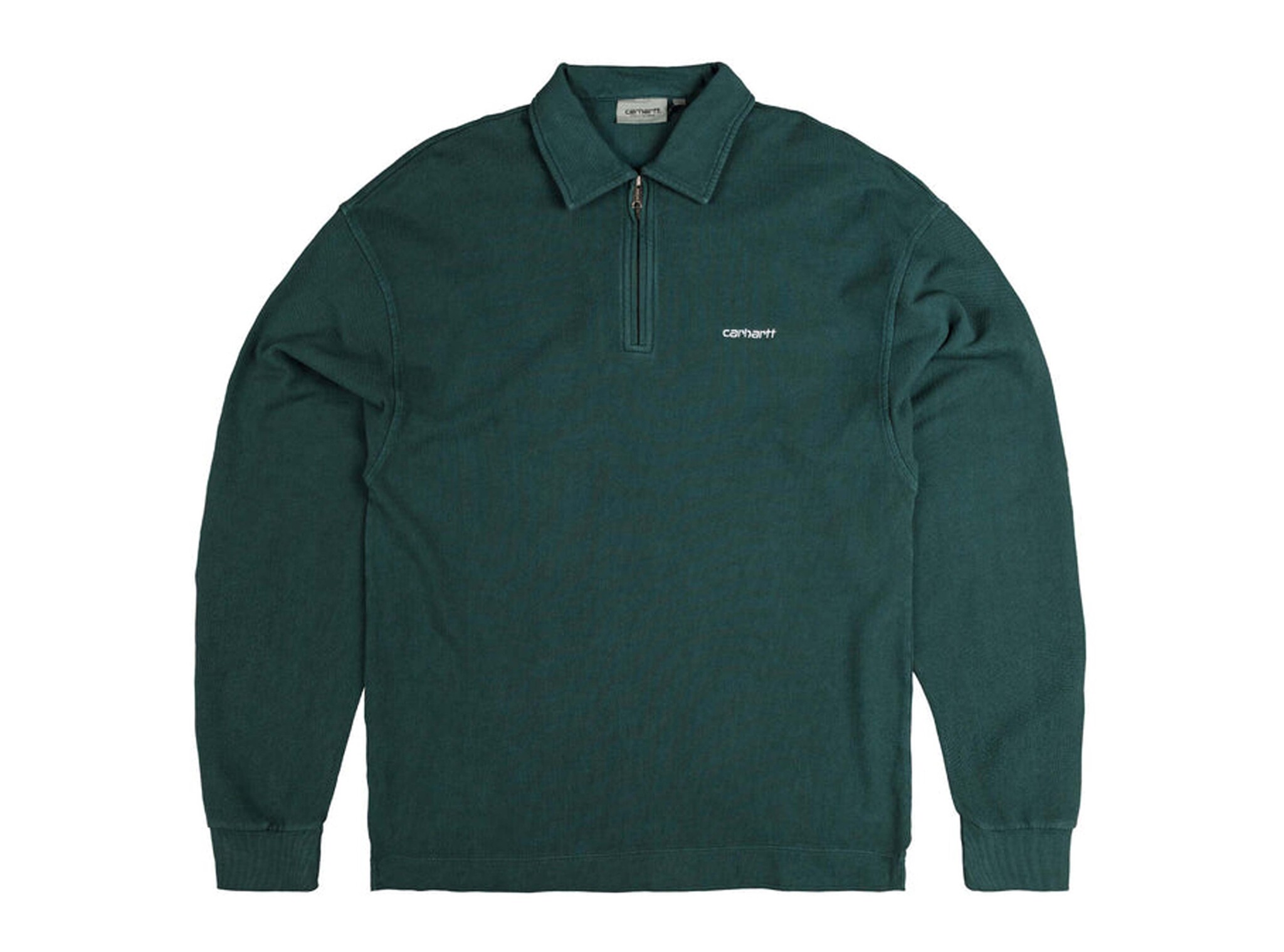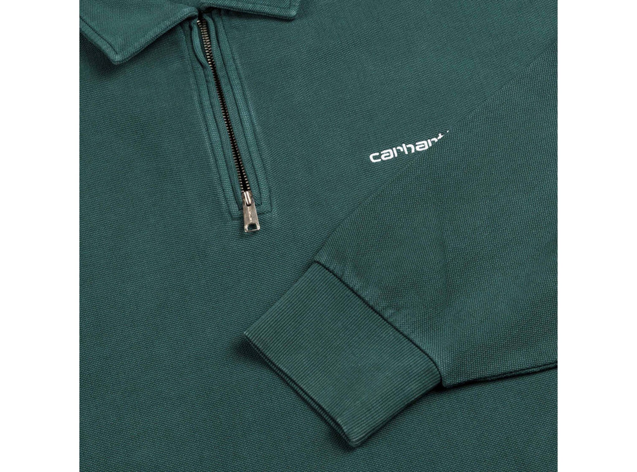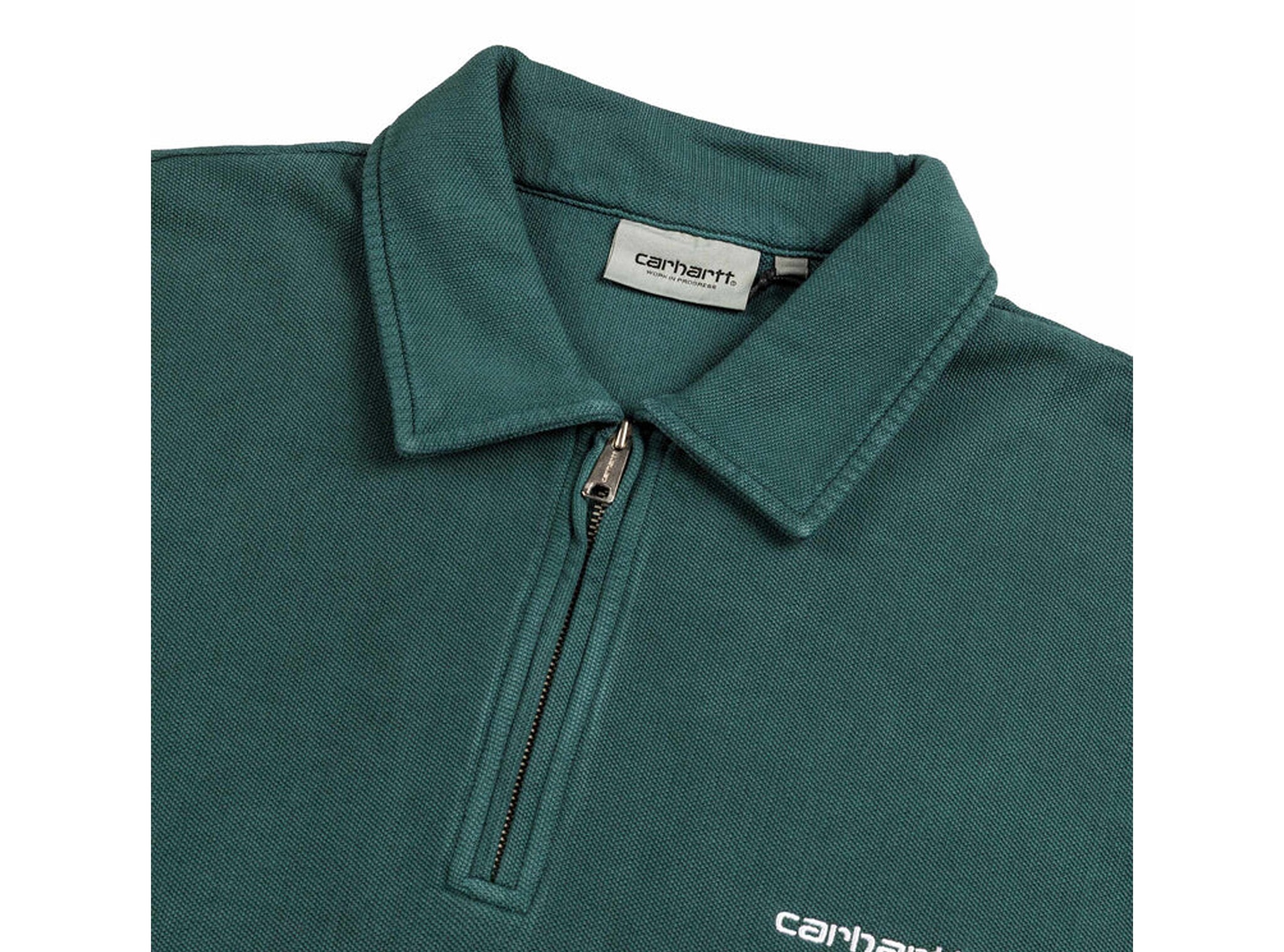 The Carhartt WIP Piqué Script Sweat in Dark Fir is a clean and casual crewneck made from breathable piqué cotton. Featuring a subtle textured finish and the classic embroidered Script logo in white, it offers a refined yet sporty look. With ribbed cuffs and hem and a regular fit, this sweatshirt blends everyday comfort with Carhartt’s signature workwear-inspired aesthetic.