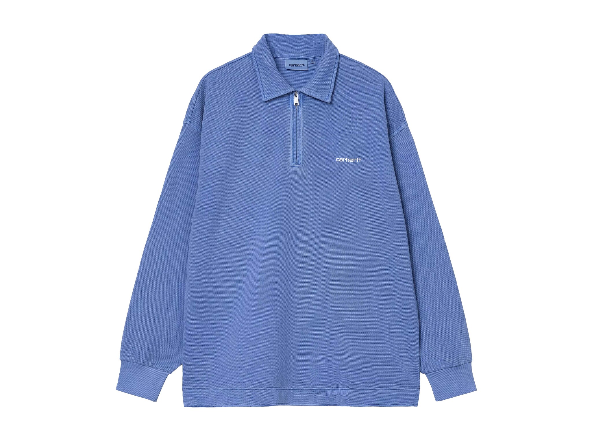 The Carhartt WIP Piqué Script Sweat in Wolfsbane/White blends classic style with athletic edge. Made from durable piqué cotton, it features a breathable textured fabric. The regular fit ensures comfort, while the white embroidered Script logo on the chest adds a clean finishing touch. Ribbed cuffs and a crew neckline provide structure and wearability. Perfect for casual wear with a sporty feel.