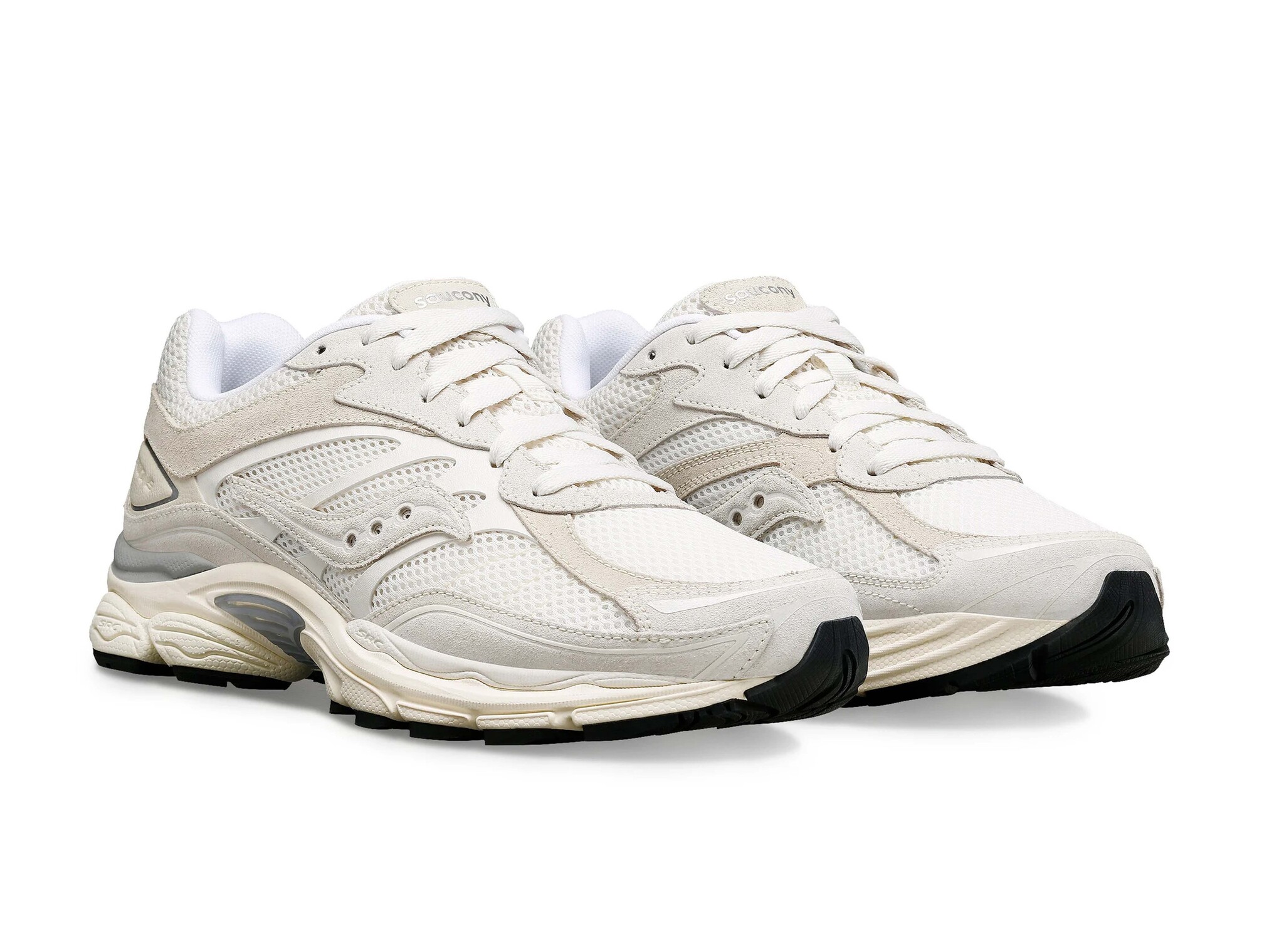 Product description: The Saucony ProGrid Omni 9 Premium in White is a refined and elevated remaster of the original retro tech silhouette first launched in 2010, one of Saucony's most forward-thinking running designs of its era. Where the standard Omni 9 leans into open pore mesh and synthetic overlays, this Premium version steps up the material story with refined breathable mesh alongside premium suede and leather details throughout the upper, delivering a more sophisticated and tactile finish that elevates the archival silhouette. The clean all-white colourway gives the ProGrid Omni 9 Premium a crisp and versatile character that works effortlessly across casual and street-inspired outfits. Underfoot, ProGrid cushioning technology delivers superior shock absorption and stability, supported by a dual density EVA midsole for reliable all-day comfort. The rubber outsole provides durable and dependable traction on any surface. A timeless and polished lifestyle sneaker that celebrates early 2010s Saucony performance heritage in a premium everyday form.