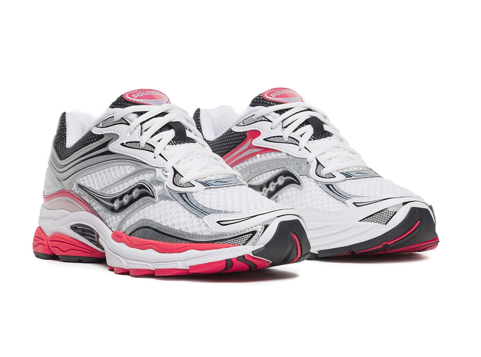 Product description: The Saucony ProGrid Omni 9 in White and Red is a bold reintroduction of one of the most defining running silhouettes of 2010. Originally launched as a stability running shoe, the Omni 9 has grown into a lifestyle icon that balances retro running DNA with modern everyday wearability. The open pore breathable mesh upper keeps the foot cool and well-ventilated throughout the day, while shiny synthetic overlays and rubberized cage elements add structure, durability and a sharp technical aesthetic. The crisp White base paired with Red accents creates a clean and striking colourway that stands out effortlessly. Underfoot, the ProGrid technology evenly distributes shock and impact across each stride, delivering superior cushioning and stability for all-day comfort. The technical rubber outsole provides reliable grip on any surface. A recycled lining and footbed add a sustainable touch to this iconic silhouette, making it a well-rounded choice for both fashion-forward everyday wear and light training.