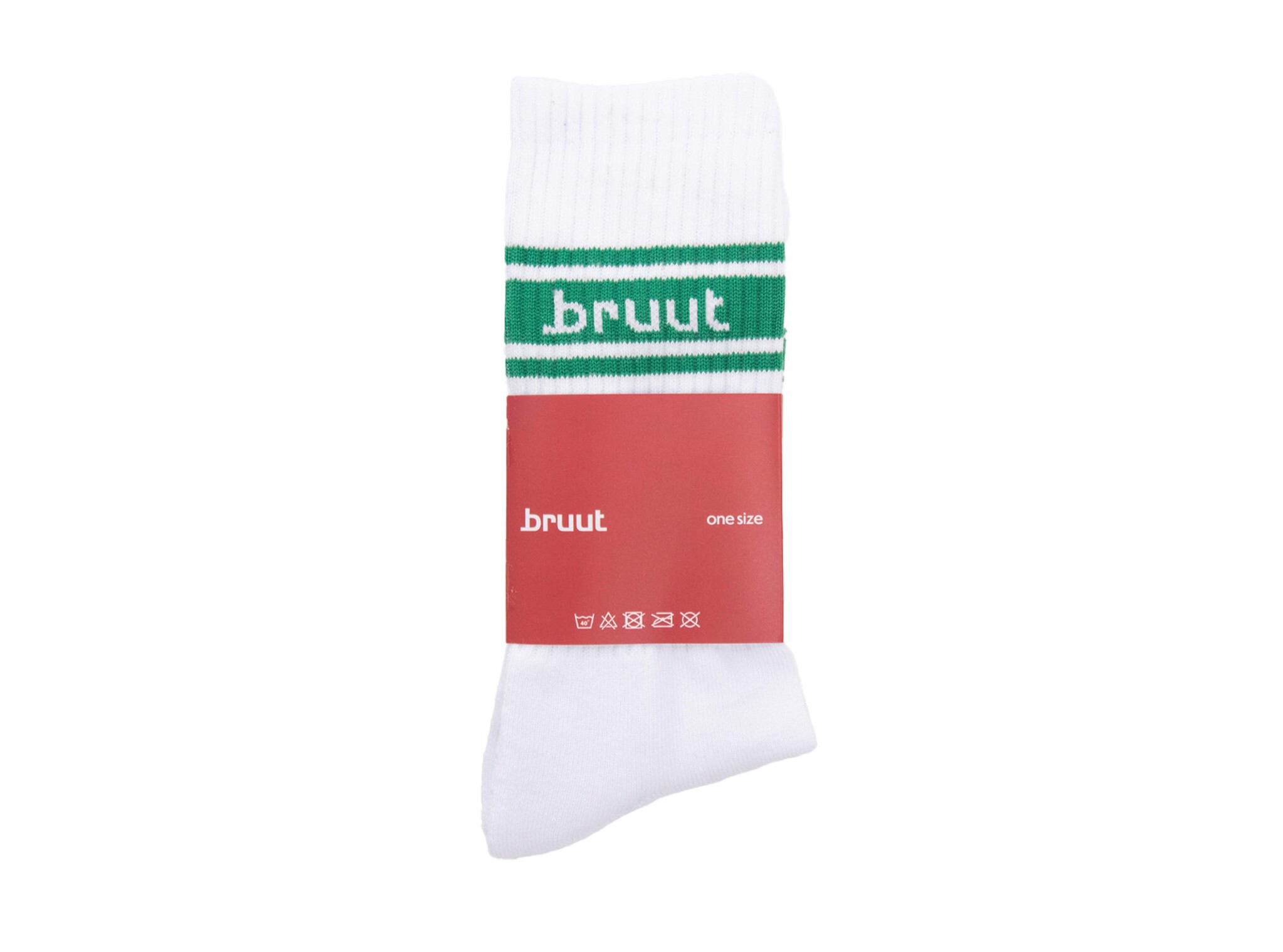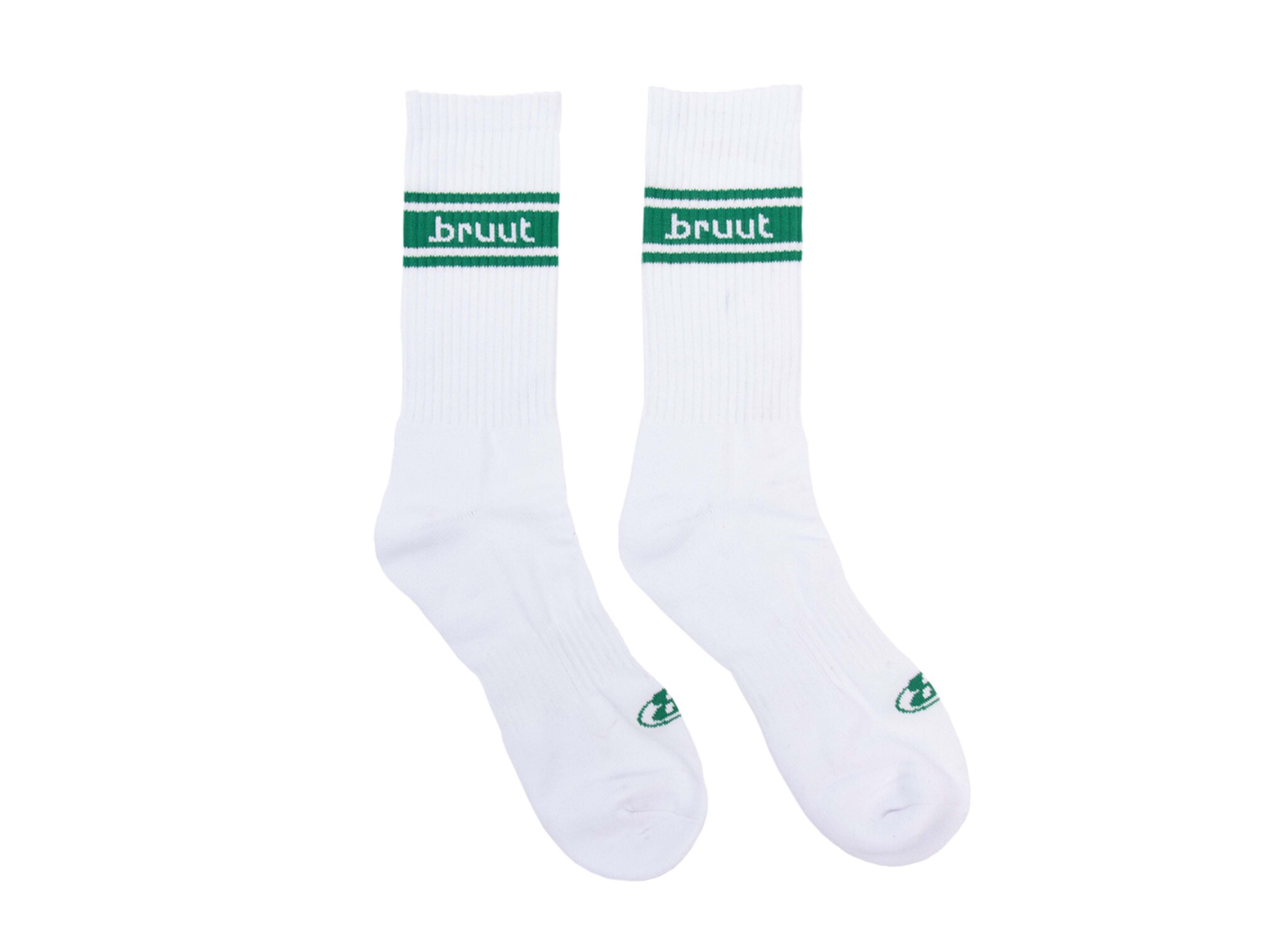 The Bruut Retro Sock White Green adds a sporty retro touch to your outfit. These white socks are crafted from a comfortable cotton blend and feature a green retro stripe detail with a subtle Bruut logo. Perfect to pair with sneakers and ideal for everyday wear.