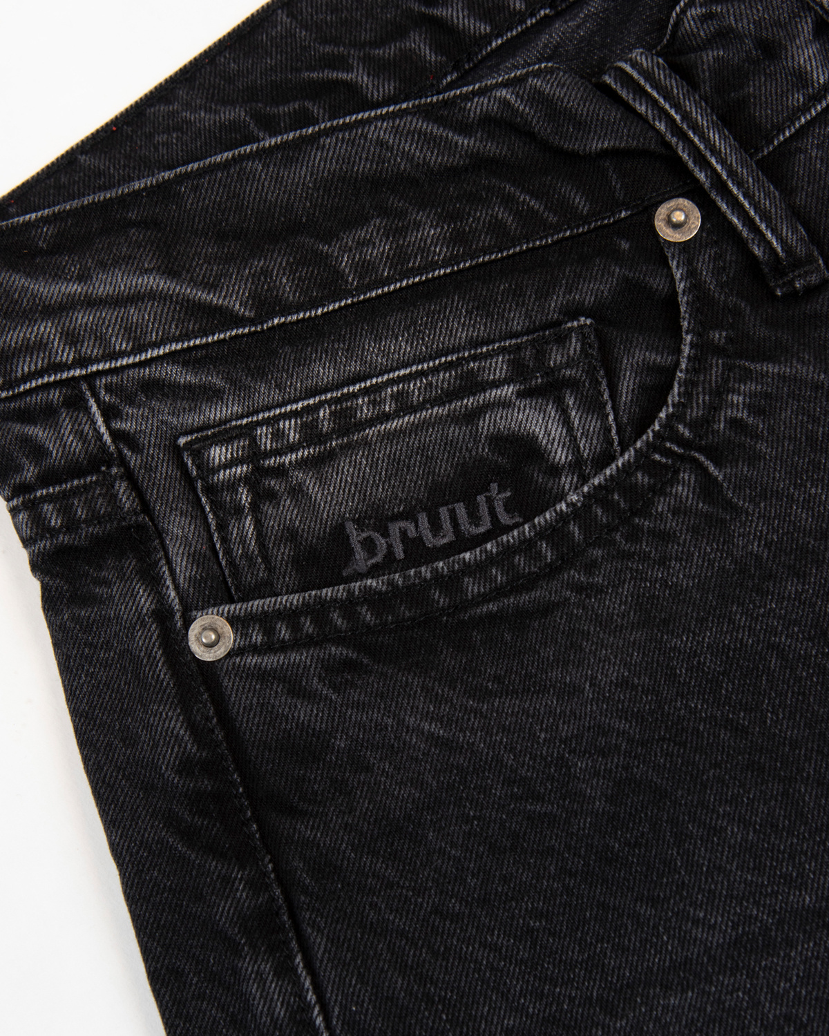 The Bruut Shabbaz Denim Pant in Black is a clean and essential piece with a sharp streetwear edge. Crafted from durable cotton, this relaxed fit denim features straight legs and a sleek black wash that works with just about anything. Subtle Bruut branding adds a modern finish. A go-to item for any wardrobe — casual or layered.