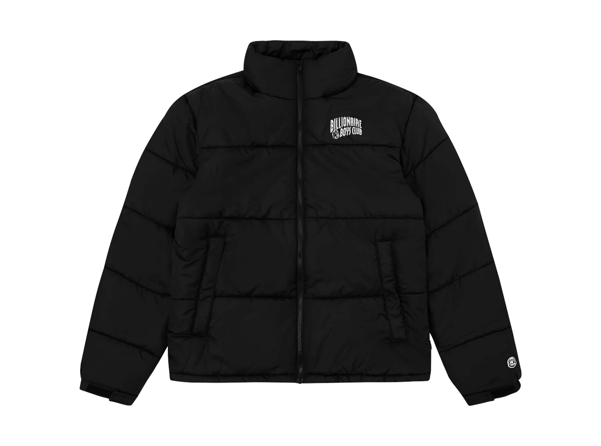 The Billionaire Boys Club Small Arch Logo Puffer Jacket in Black delivers sleek warmth and signature style. Crafted from a smooth nylon shell with insulating polyester padding, this puffer keeps you comfortable and stylish through cold weather. Featuring the iconic Small Arch Logo embroidered on the chest, it’s finished with a high collar, concealed zipper closure, and elasticated cuffs. A premium staple for any streetwear wardrobe.