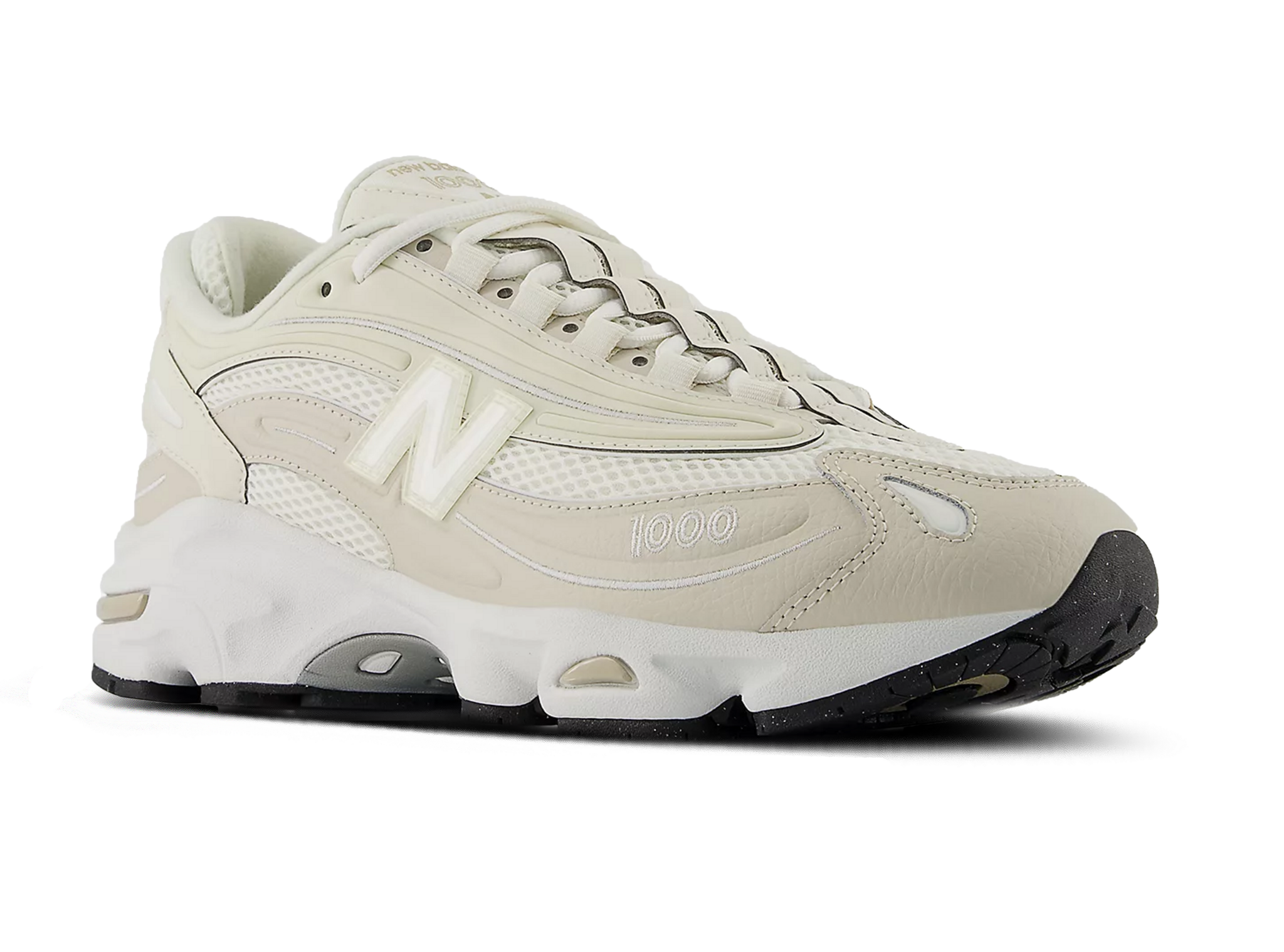 Product description: The New Balance U1000 in Timberwolf and Sea Salt is a bold reintroduction of a millennium-era icon, originally launched in 1999 as one of New Balance's most forward-thinking running designs. The silhouette draws on a futuristic aesthetic that defined the era, featuring an inverted upper construction where breathable mesh underlays emerge from the prominent synthetic overlays to create a refined, tech-inspired layered look. The lateral "N" logo with translucent trim adds a premium archival detail to the clean overlapping panel construction. The warm Timberwolf brown tones are beautifully offset by soft Sea Salt cream accents, creating an earthy and understated colourway that pairs effortlessly with everyday outfits. Underfoot, ABZORB cushioning at both the heel and forefoot delivers reliable impact absorption and all-day comfort, supported by a Stability Web midfoot shank for added structure. The segmented rubber outsole rounds off the technical sole unit. A refined unisex lifestyle sneaker that bridges late 1990s performance running heritage with modern everyday style.