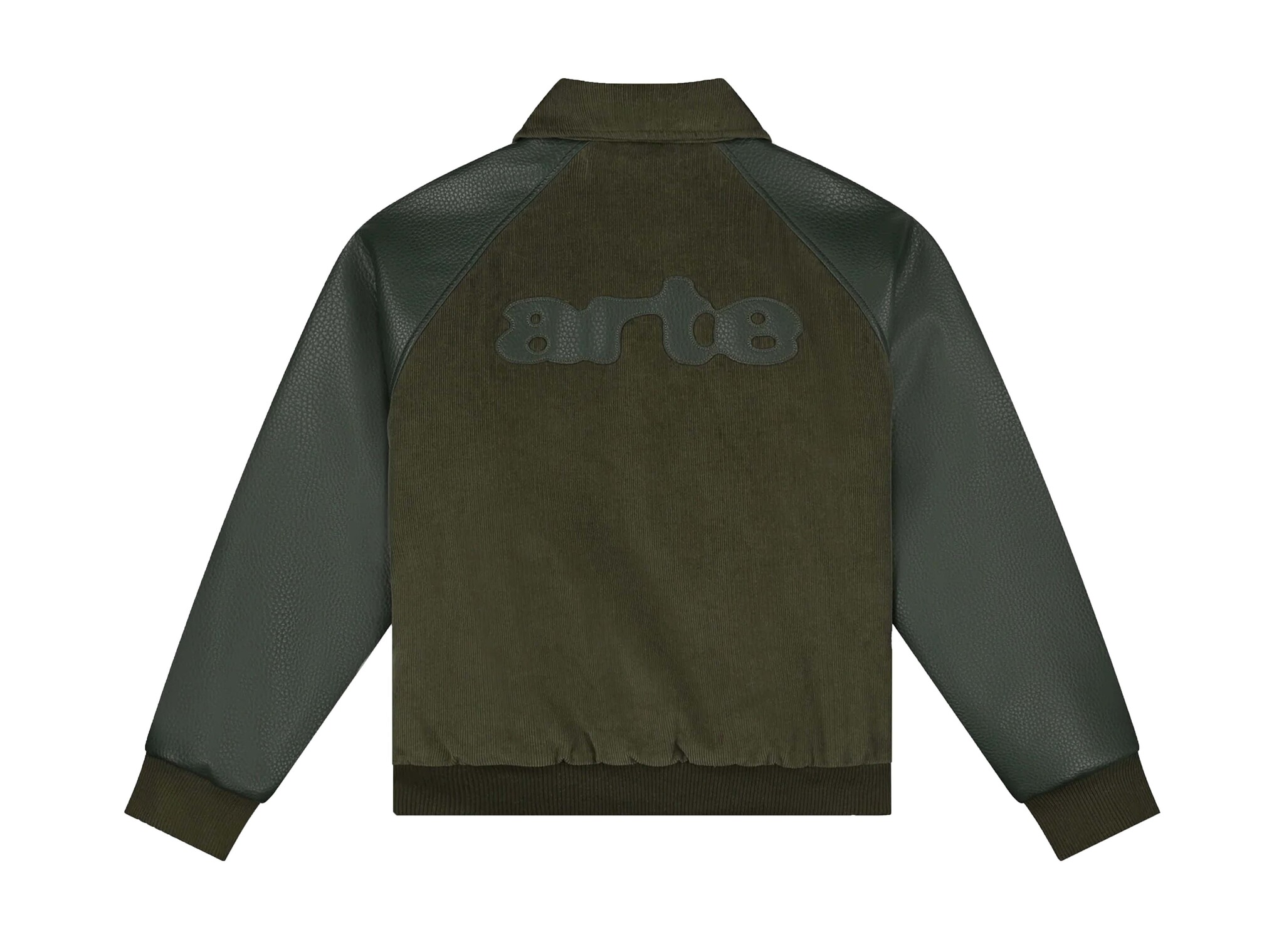 The Arte Antwerp Varsity Jacket Green from the AW25 collection reimagines the classic college jacket with a refined contemporary twist. Crafted from a premium wool blend, it features contrasting sleeves, chenille patches, and embroidered details true to Arte’s aesthetic. Finished with a smooth inner lining for comfort, this piece blends sporty heritage with modern streetwear elegance.
