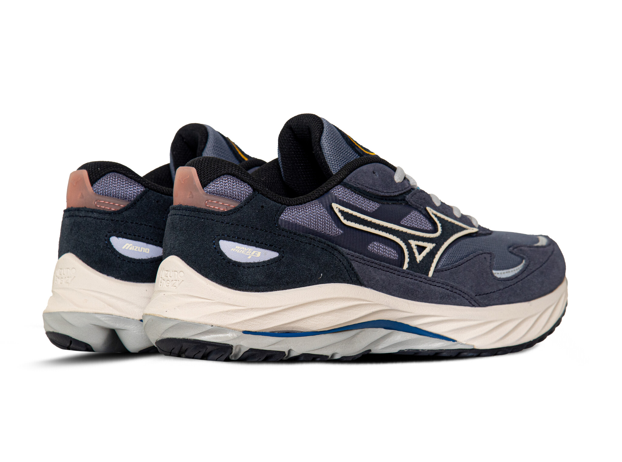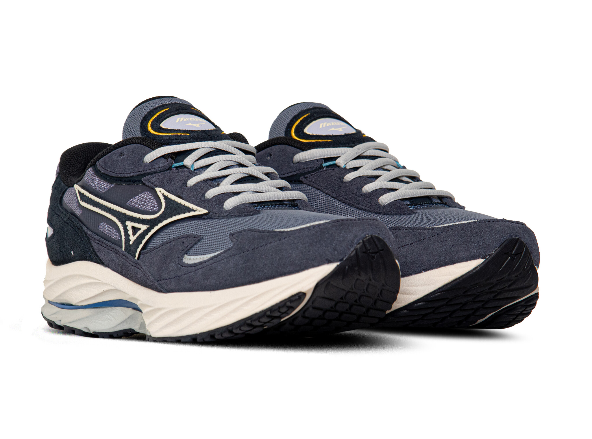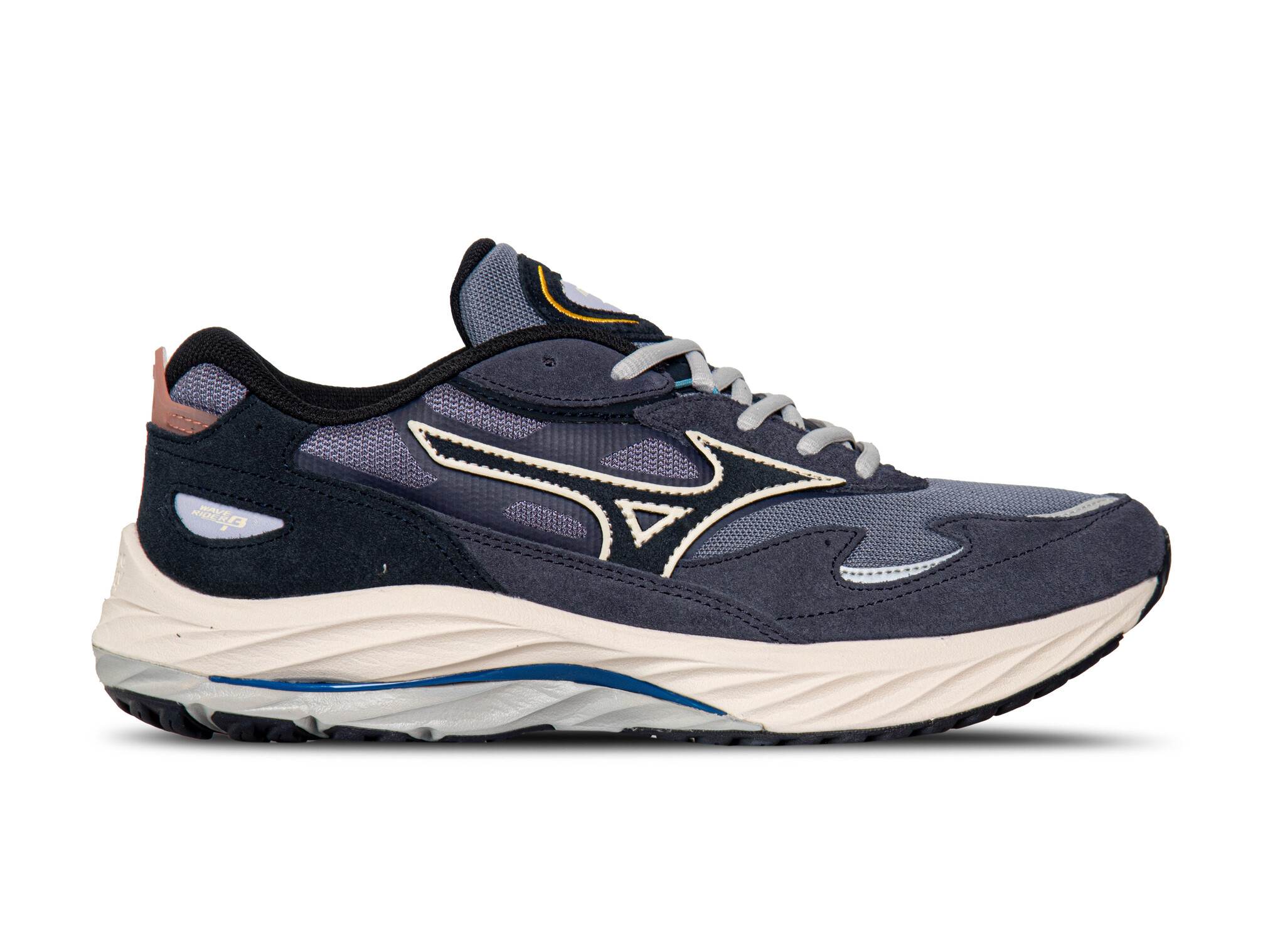 The Mizuno Wave Rider β in “Blue Granite / Salute / Odyssey Gray” is a unisex trainer blending premium materials with modern cushioning tech. It features Mizuno’s WR26 midsole with ENERZY foam and Wave unit for responsive stability and comfort, honoring the legacy of classic Wave Rider models . The upper pairs breathable mesh with suede or synthetic overlays, enhanced by thermo-transfer and molded details for a sleek finish. The rubber outsole uses high-wear X10 sections for durability and grip. Enthusiasts call it “more bouncy” and “extremely comfortable” thanks to the ENERZY cushioning