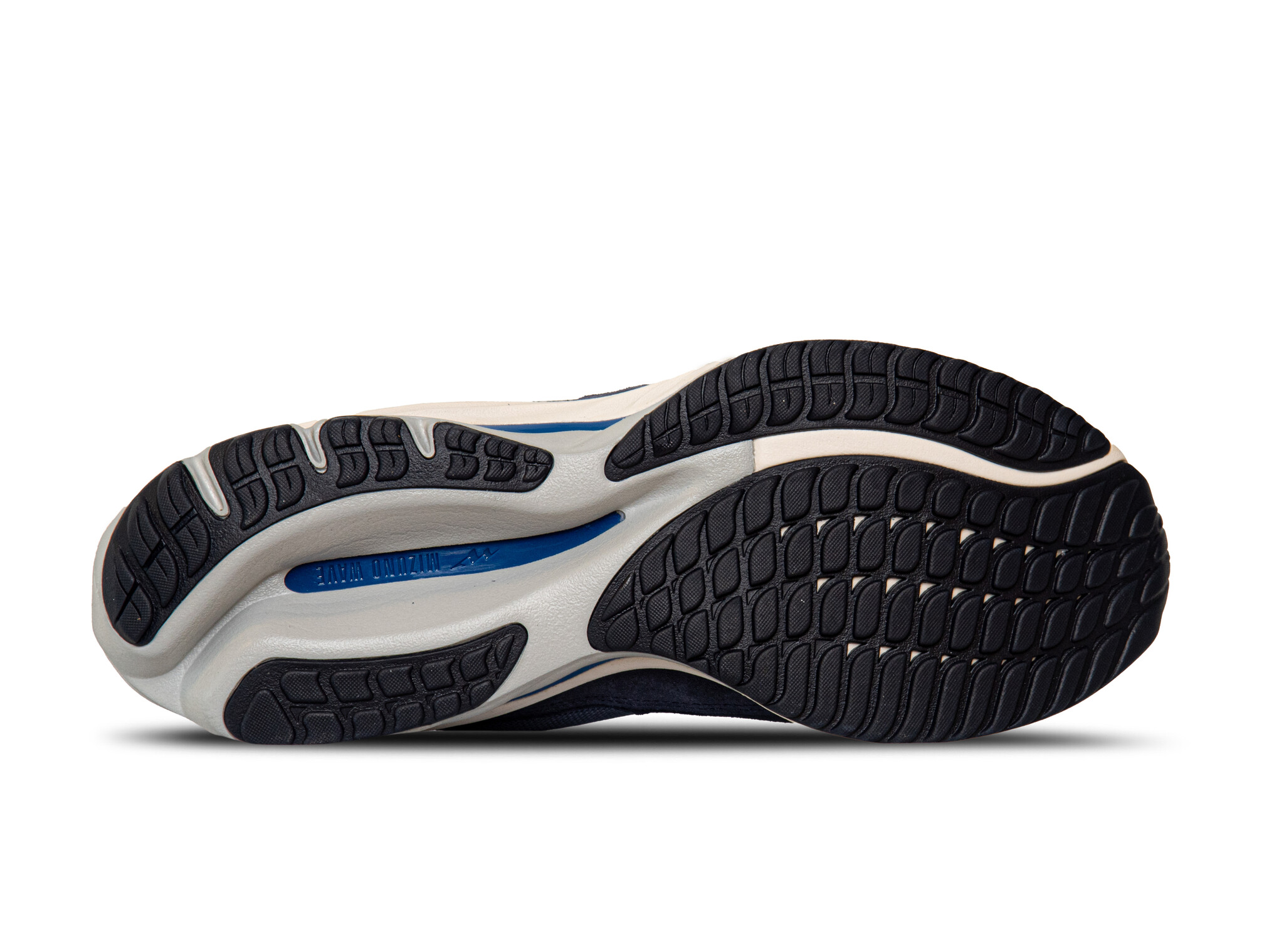 Sole: Rubber outsole with WR26 unit, Mizuno Wave unit, and X10 traction rubber