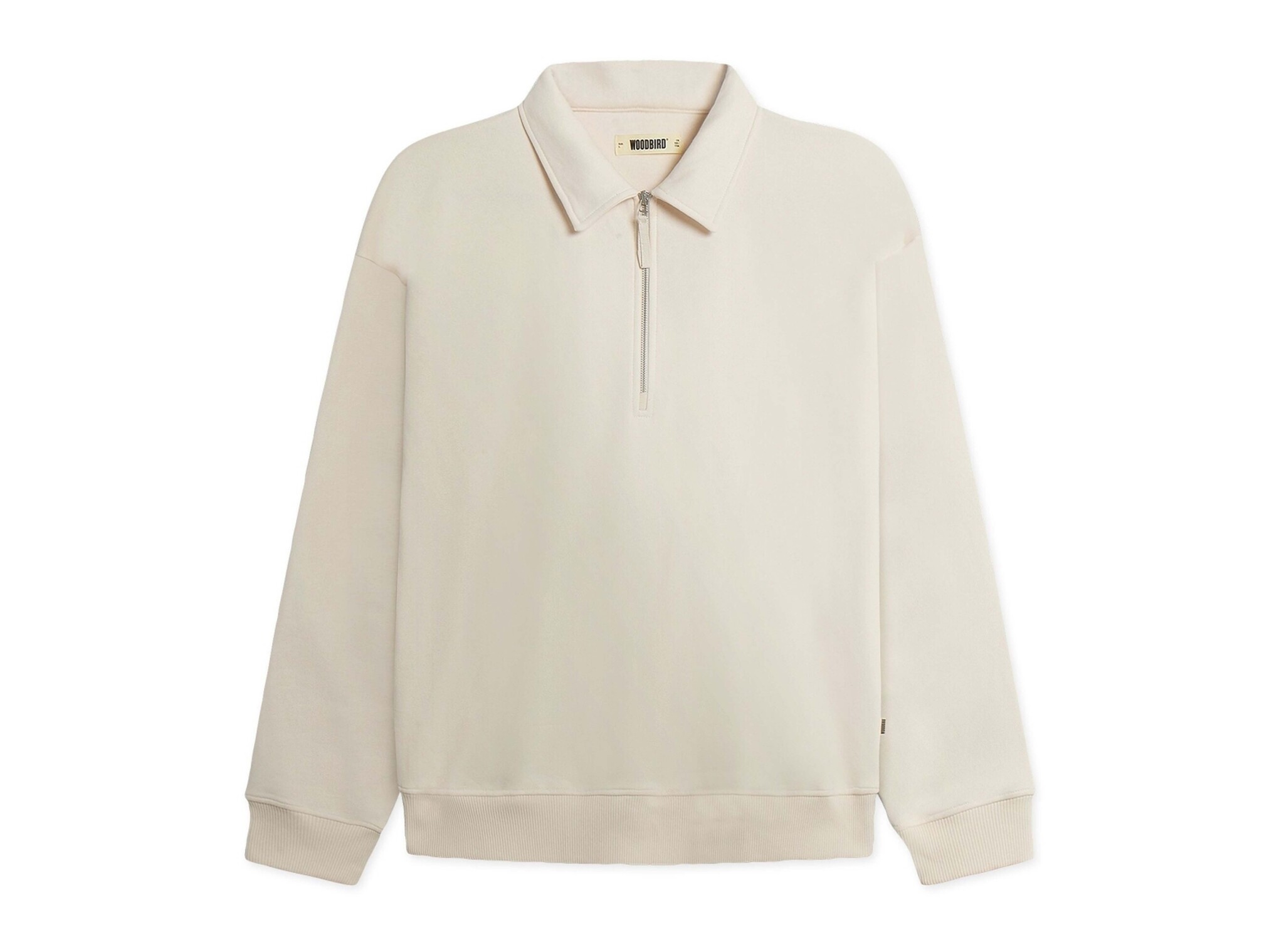 The Woodbird WBTom Zip Polo in Off White blends sporty and classic styles. Featuring a half-zip closure and soft fabric for a modern look and ultimate comfort. Ideal for both casual and smart-casual outfits.