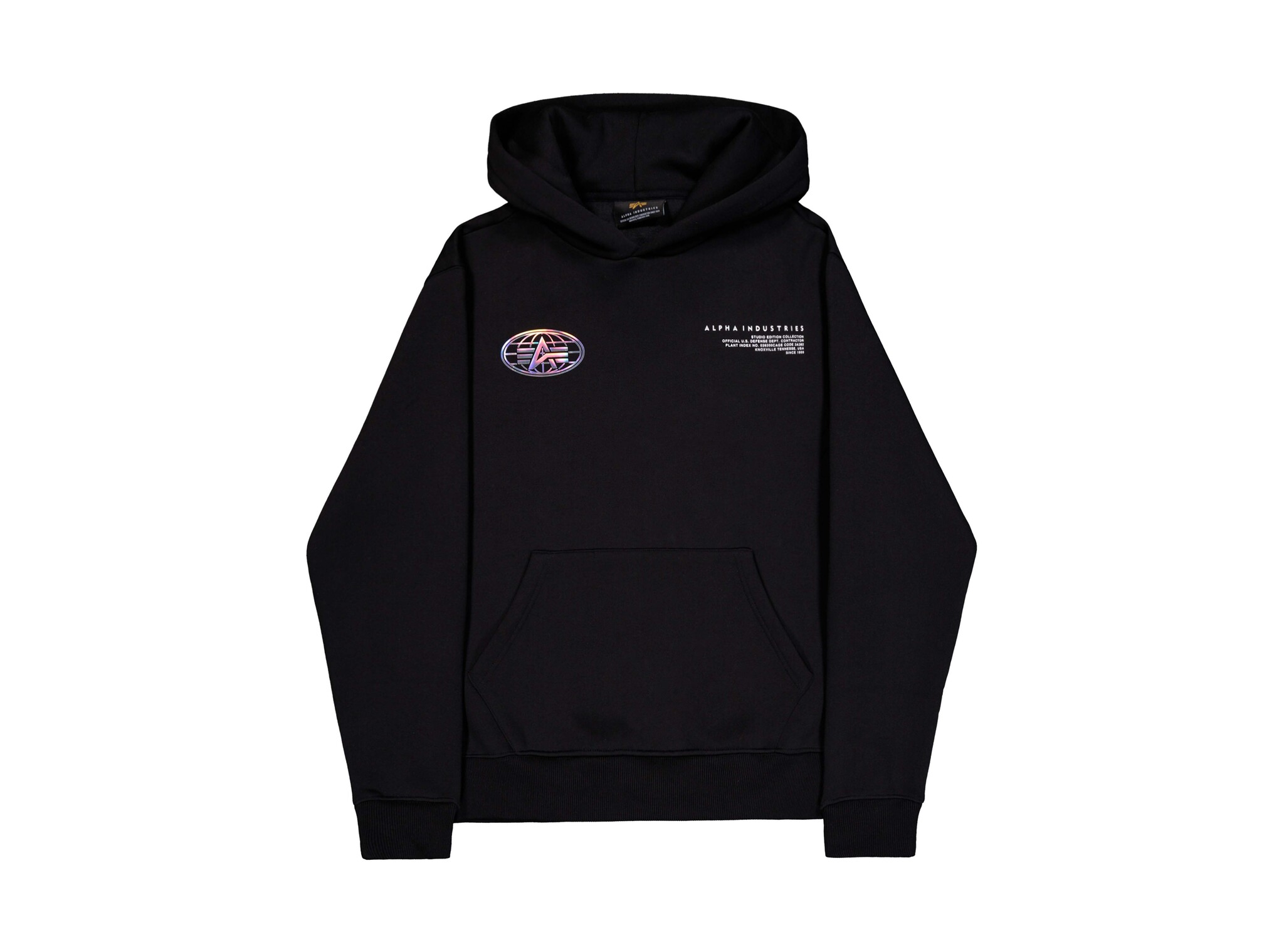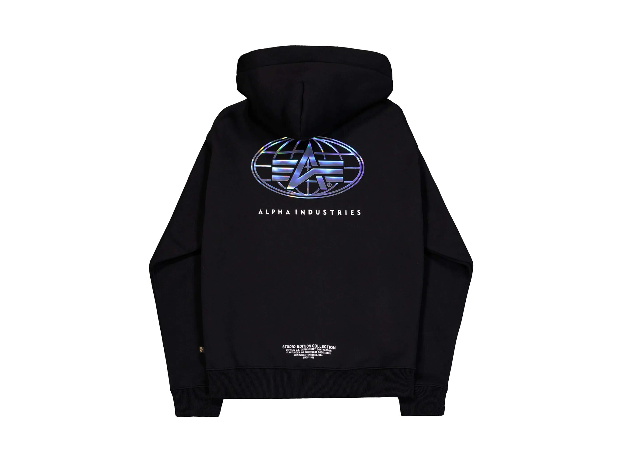 The Alpha Industries World Logo Metallic BP Hoodie in Black is a standout piece with a metallic world map print on the back that adds an eye-catching touch. Made from a comfortable cotton blend, this hoodie features an adjustable hood, kangaroo pocket, and signature Alpha branding on the sleeve. A go-to piece for fans of bold urban streetwear with a global edge.