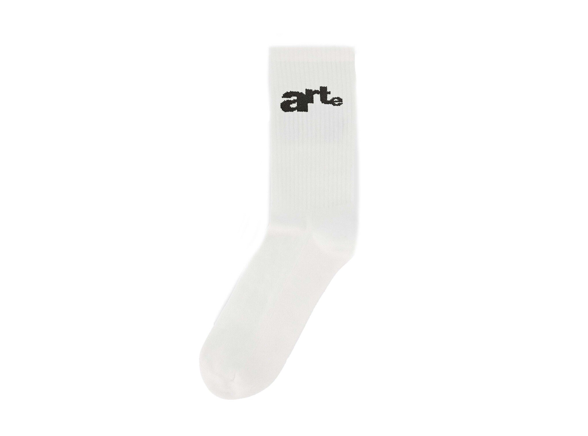 The Arte Antwerp Big Logo Socks in White are comfortable socks featuring a clean and recognisable design. Crafted from a soft cotton blend for all-day comfort. The white base is finished with a bold Arte logo, delivering subtle yet distinctive branding. Perfect as a finishing touch for casual and streetwear outfits.