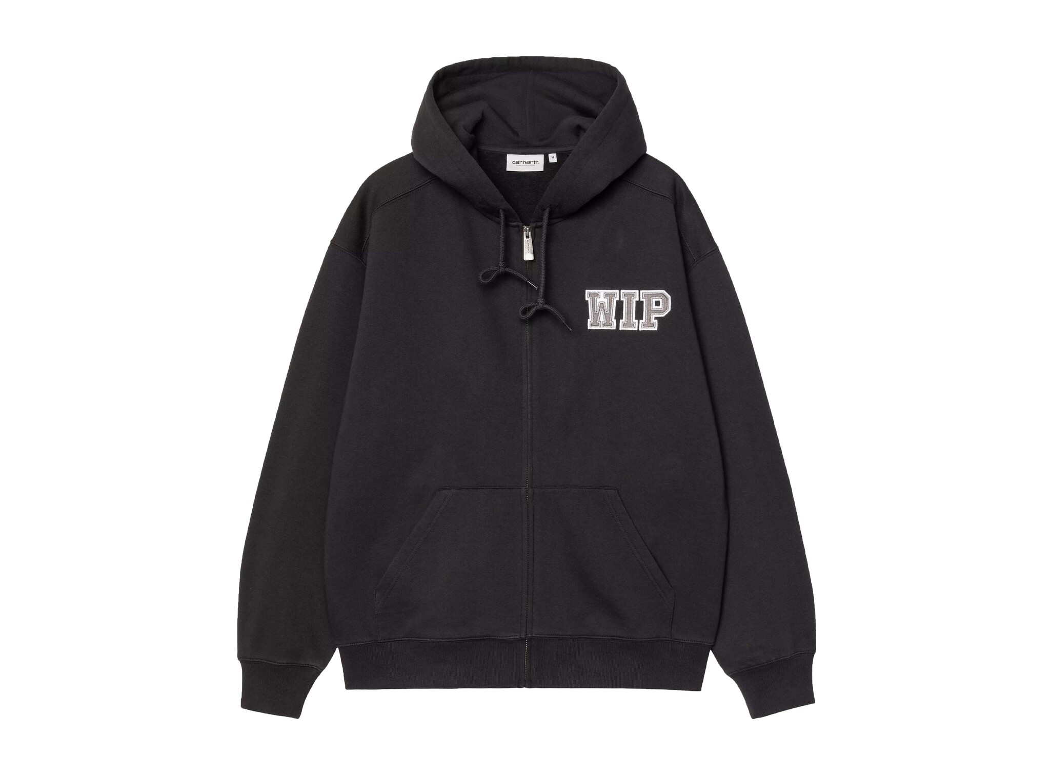 The Carhartt WIP Hooded Mini WIP Sweat Jacket in Black is a comfortable and versatile full-zip hoodie crafted from soft, midweight cotton jersey. It features a lined hood, kangaroo pockets, and a subtle Mini WIP logo on the chest for a clean, modern aesthetic. Ideal for everyday wear, whether you're going casual or leaning into a streetwear look.
