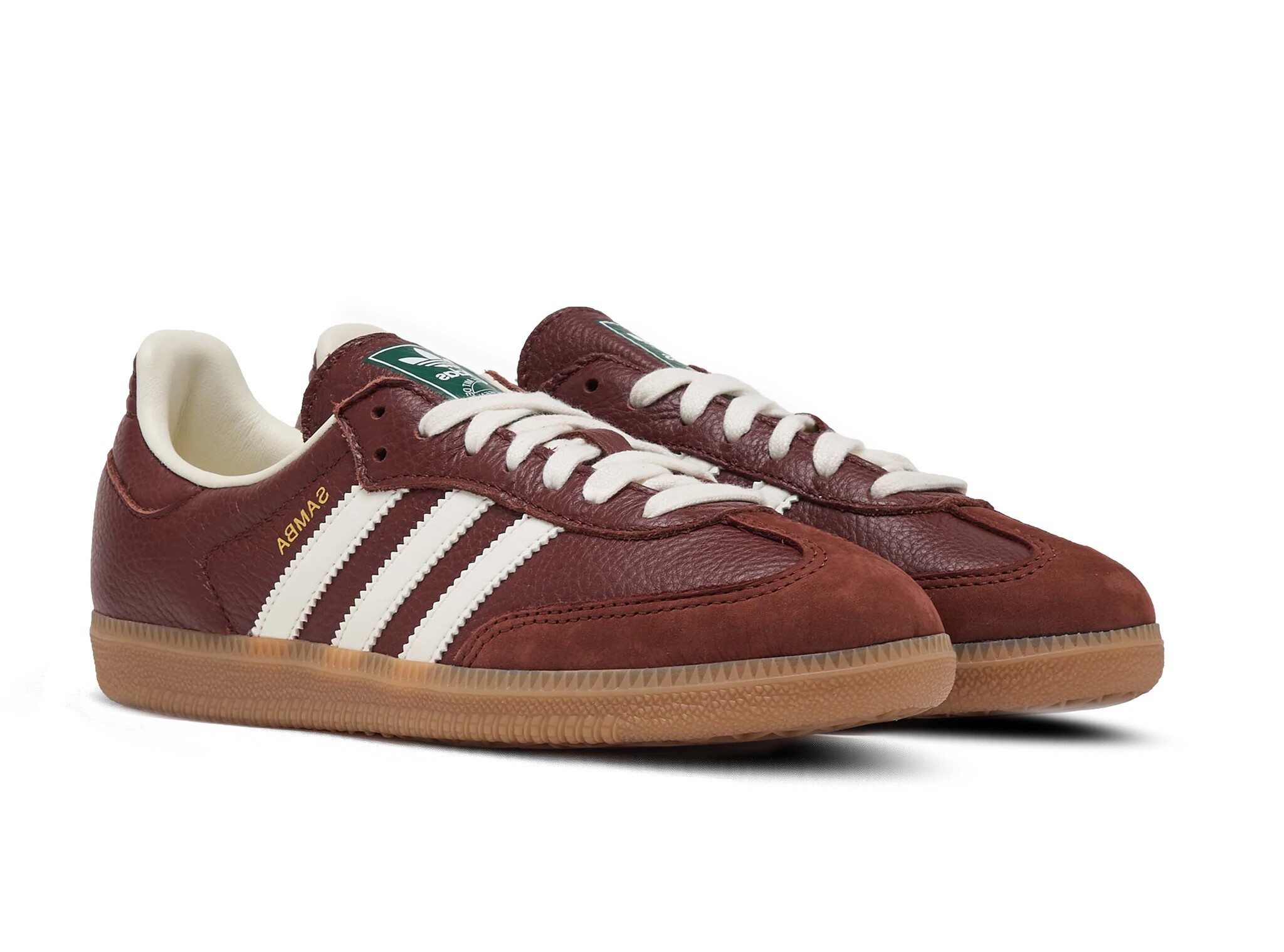 The Adidas Samba OG Fox Brown Off White (JR0892) reimagines one of Adidas’ most iconic silhouettes. Originally designed as an indoor soccer shoe, the Samba has become a staple in streetwear and casual fashion. Featuring a premium leather upper with suede overlays, paired with the signature gum rubber sole, this edition offers timeless style and comfort. The Fox Brown base combined with Off White accents adds a versatile, refined touch, making it a must-have sneaker for everyday wear.