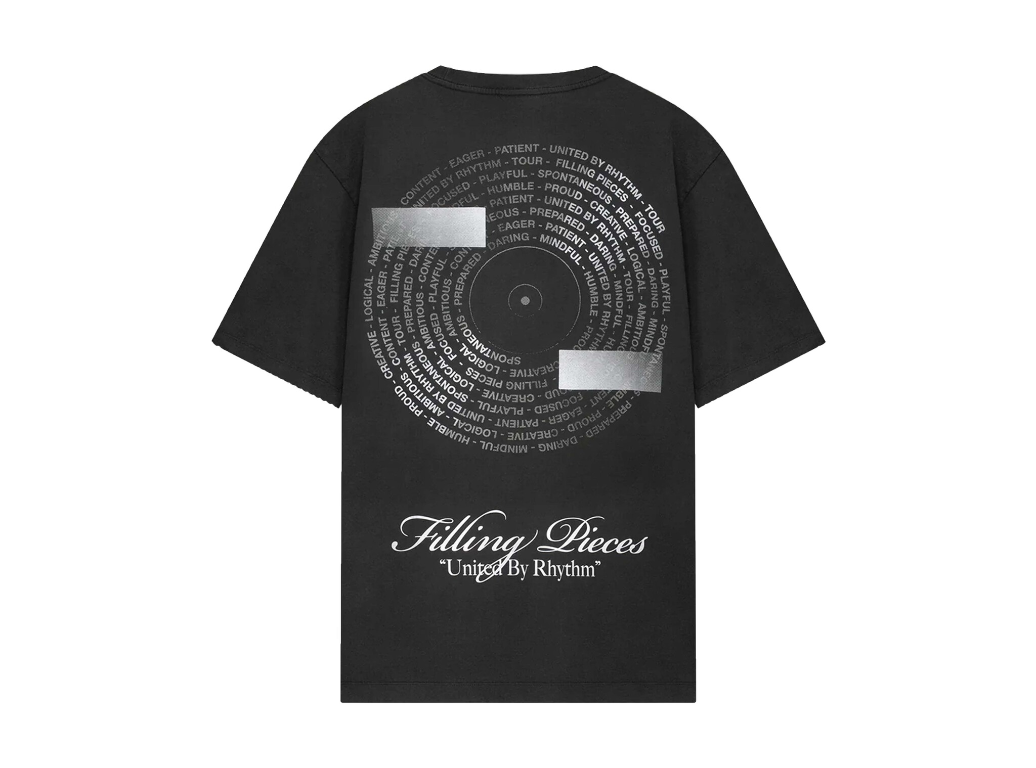 The Filling Pieces Vinyl T-shirt in Vintage Black combines a classic tee with a creative graphic print. The bold vinyl graphic on the chest adds a unique streetwear edge. Crafted from soft cotton for maximum comfort and durability, perfect for casual looks or pairing with other streetwear pieces.