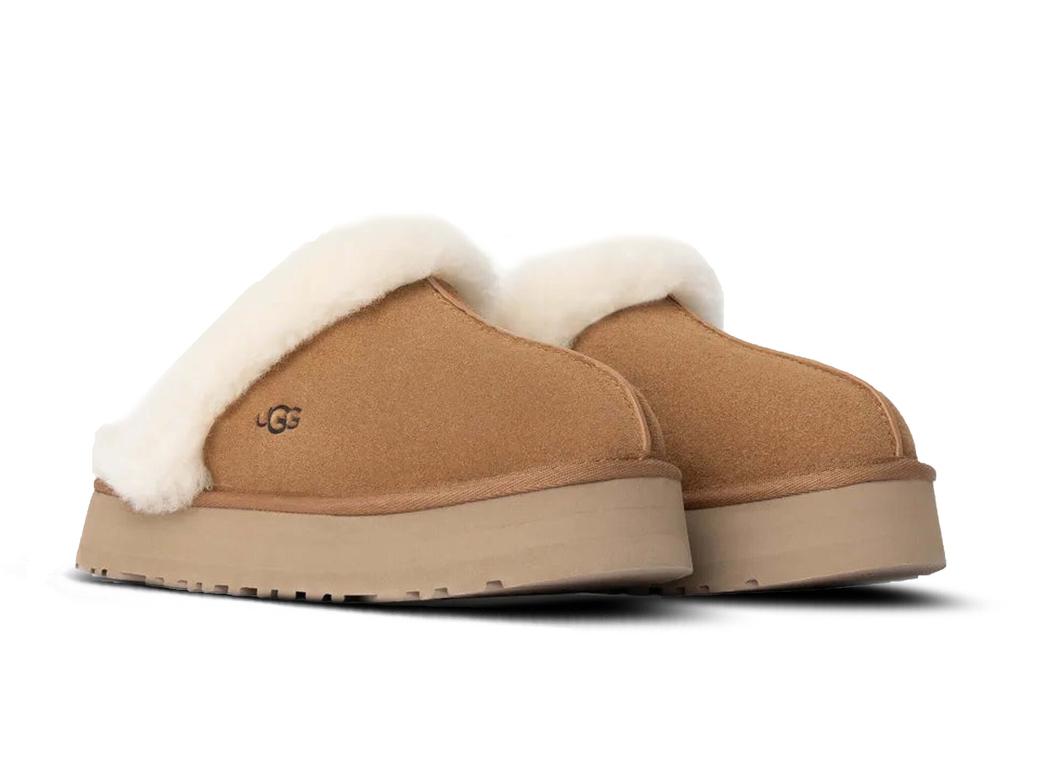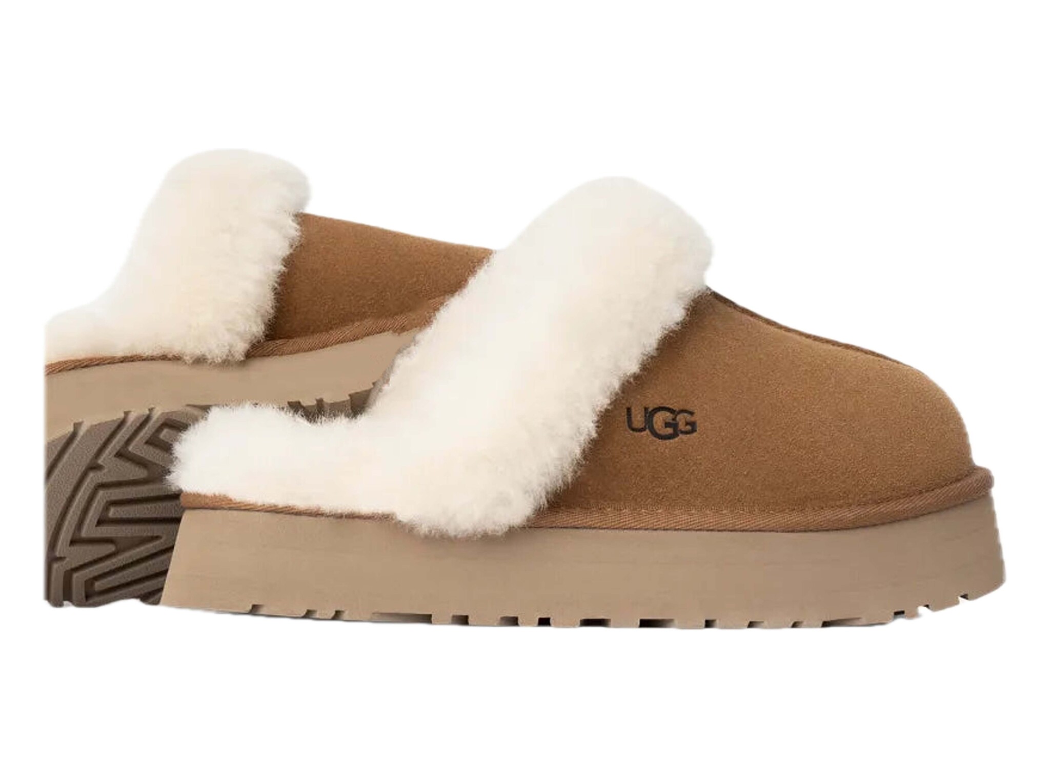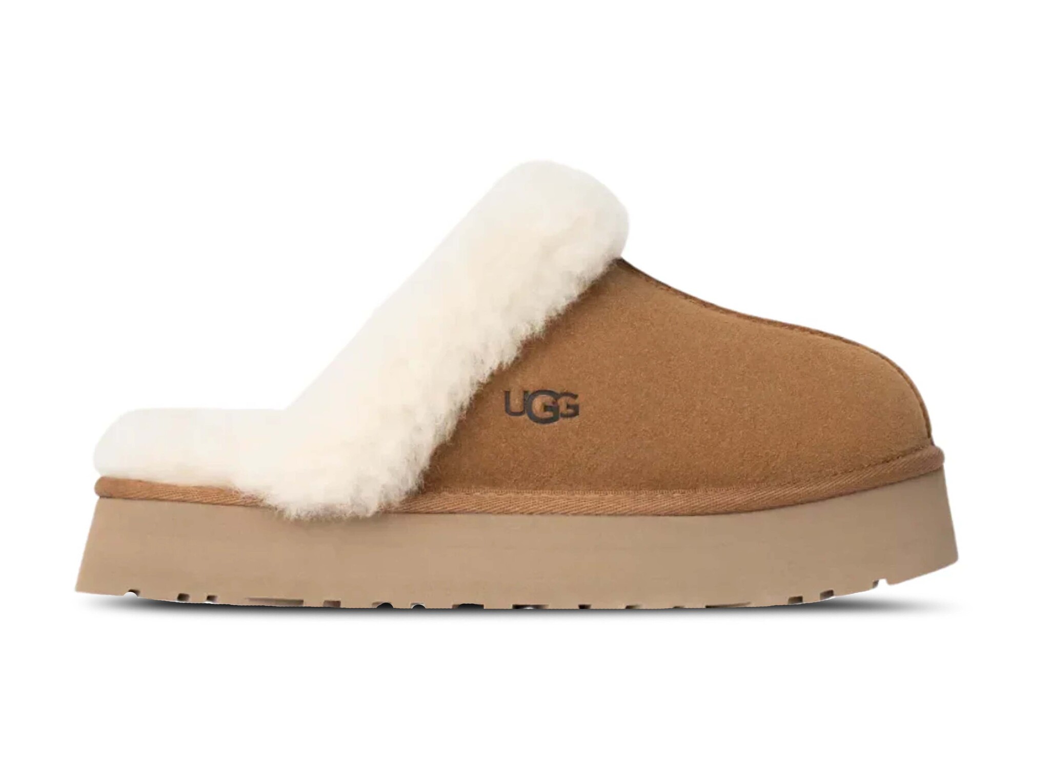 The UGG W Disquette Chestnut (1122550 CHE) is a cozy platform slipper inspired by the iconic UGG style. Crafted from premium suede with a soft sheepskin lining, it offers ultimate comfort and warmth. The lightweight EVA-rubber platform sole makes it suitable for both indoor and outdoor wear. Finished in the classic Chestnut colorway, it’s a versatile must-have for cozy and casual looks.