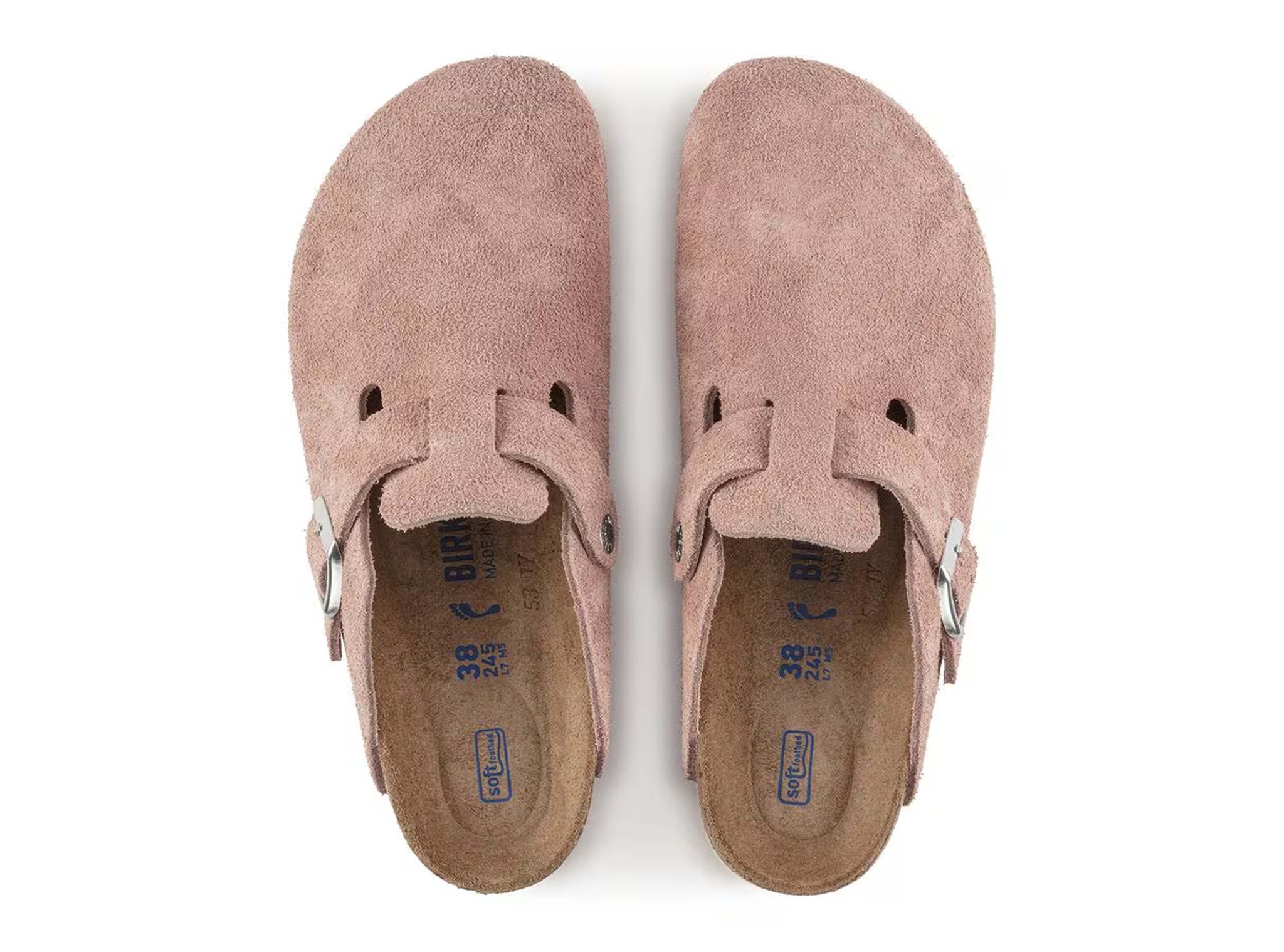 De Birkenstock Boston BS in Pink Clay is een klassieke instapper met een moderne pastelkleuren‑twist. Het bovenwerk van zacht suède in een subtiele roze tint wordt gecombineerd met een verstelbare metalen gesp voor een nauwsluitende, gepersonaliseerde pasvorm. Het anatomisch gevormde soft footbed met latex‑schuimlaag biedt direct comfort, terwijl de lichte EVA‑zool demping en flexibiliteit geeft bij elke stap. Ideaal voor zowel binnen als buiten, met de kenmerkende Birkenstock‑kwaliteit “Made in Germany.”