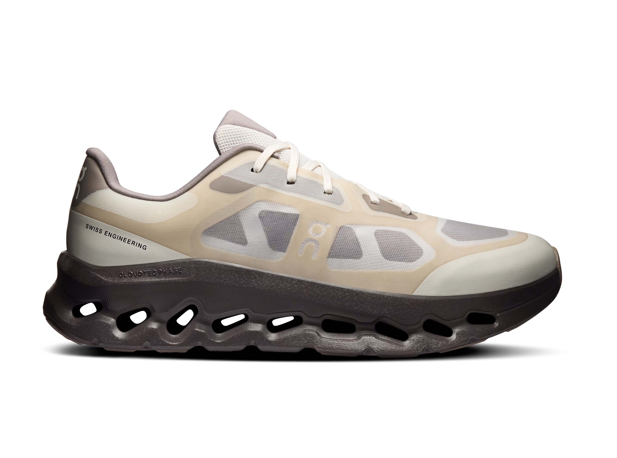 Productomschrijving: De ON Cloudtilt Remix in Dew en Pebble is een gedurfde technische evolutie van de iconische Cloudtilt, die hetzelfde ultra-gedempte dagcomfort levert in een opvallende nieuwe futuristische uitstraling. Het warme Dew bruin gecombineerd met zacht Pebble beige creëert een aards en sophisticated kleurenpalet dat moeiteloos opvalt op stadse straten. Wat de Remix onderscheidt zijn de gelaagde doorzichtige overlays op het TPEE bovenwerk, wat een onderscheidend röntgeneffect creëert met diepte en textuur dat de schoen een technisch, architectonisch gevoel geeft dat uniek is binnen het ON aanbod. Alle bovenwerkelementen zijn gefuseerd in plaats van genaaid voor een naadloze, precies vervaardigde afwerking, en het uitgesneden zijlogo voegt een laatste futuristisch detail toe. Onder de voet levert de CloudTec Phase tussenzool met gekantelde Clouds een soepele, lichtgewicht stap met uitzonderlijke schokabsorptie, ondersteund door Helion superfoam voor superieure energieterugkeer en dagcomfort. Een verfijnde en duurzame dagelijkse schoen die Zwitserse engineeringprecisie naar gedurfd nieuw terrein brengt.