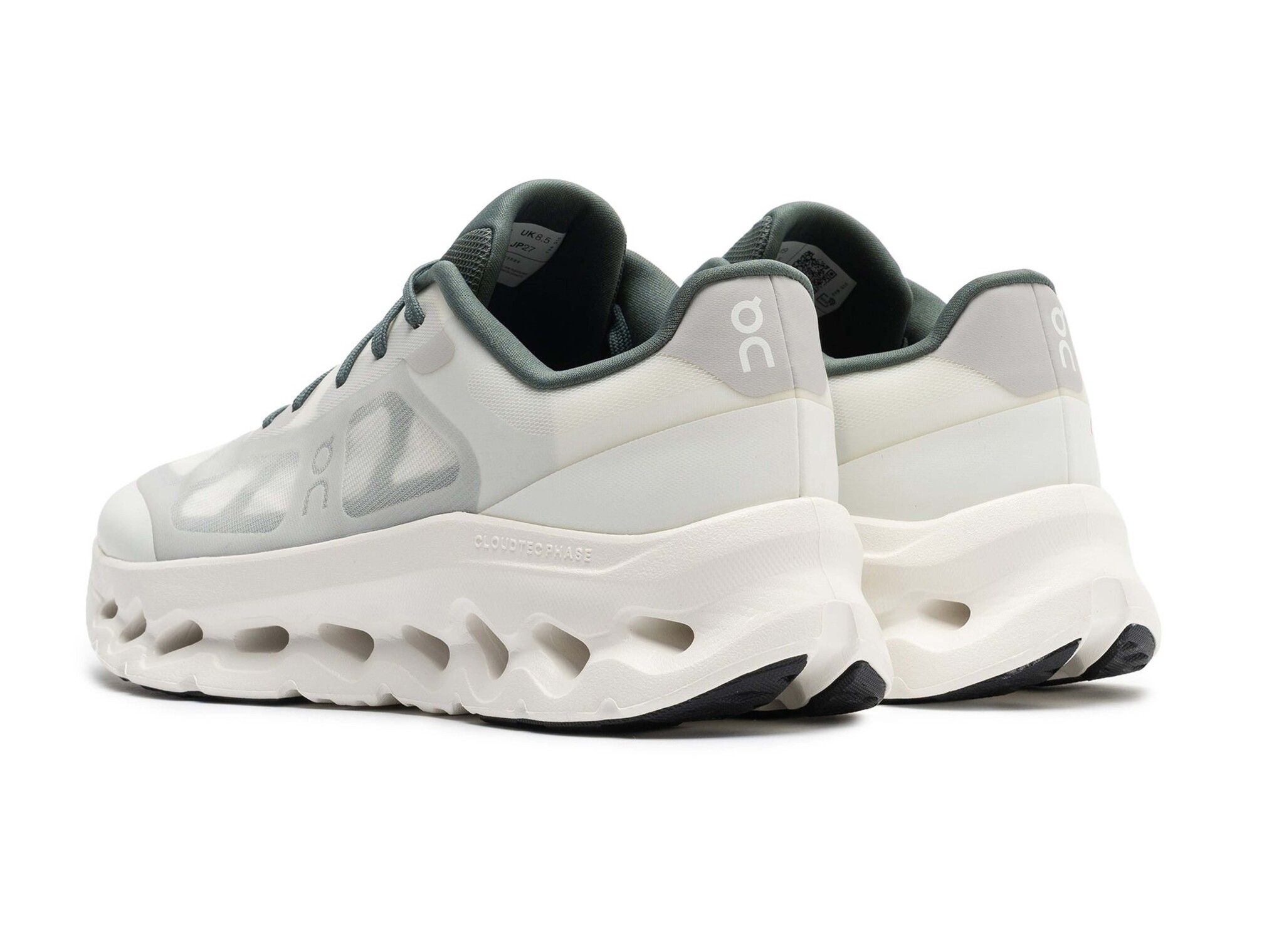 De ON Cloudtilt Remix in Olive en Ivory combineert geavanceerde dempingstechnologie met een modern en minimalistisch design. Het ademende engineered mesh bovenwerk zorgt voor lichtgewicht comfort en ventilatie, terwijl de CloudTec Phase®-technologie met Helion™ superfoam een soepele en responsieve demping biedt bij elke stap. De combinatie van olijfgroen met ivoortinten geeft de sneaker een frisse, outdoor-geïnspireerde uitstraling die perfect past bij zowel casual als sportieve outfits.