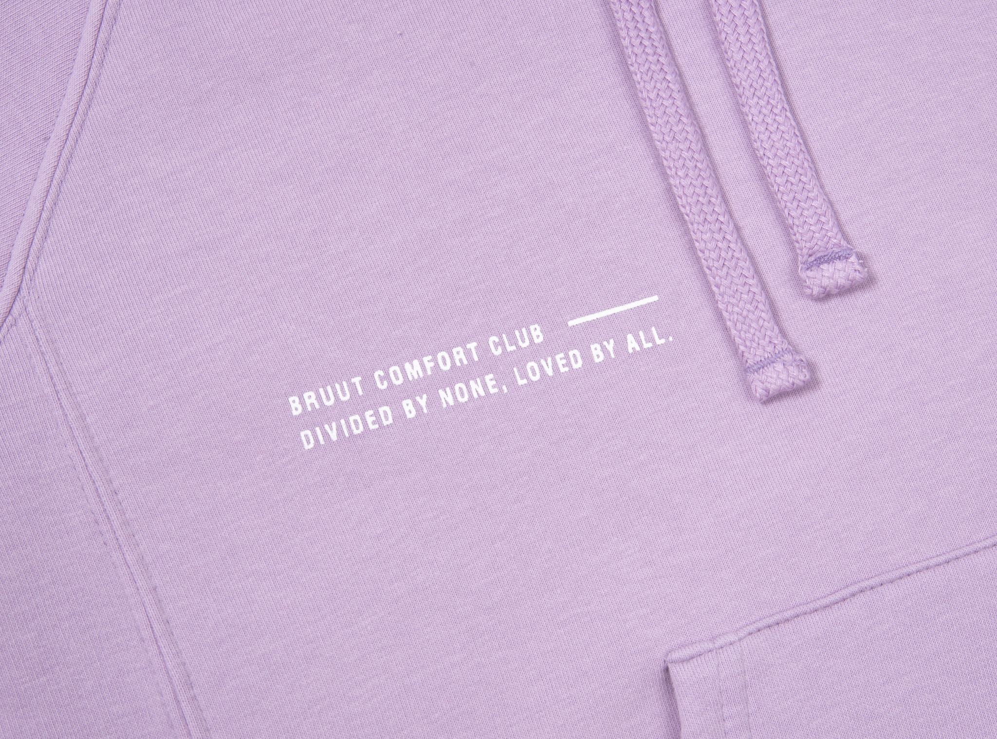 Bruut Comfort Club Hoodie Lavender BC1020 021 - deze hoodie heeft Bruut branding, en is van 100% katoen. deze hoodie valt normaal, we adviseren je om je standaard maat te nemen.