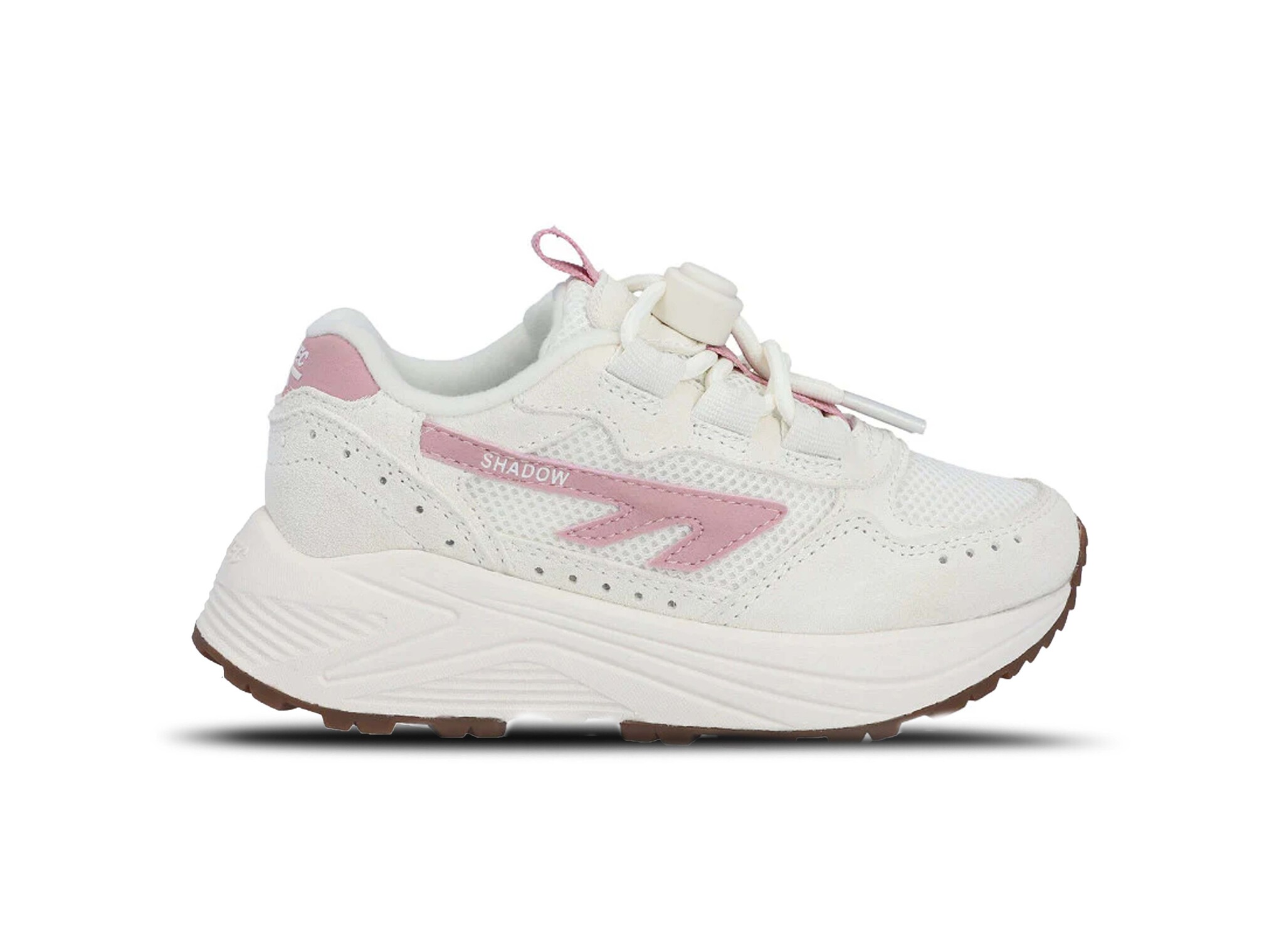 De Hi-Tec HTS Kids Shadow Gardenia Zephyr (K010042-001-01) is een frisse, speelse kindersneaker met een retro hardloopdesign. Het bovenwerk is gemaakt van ademend mesh met synthetische overlays in zachte wit- en lichtroze tinten, perfect voor een stijlvolle en sportieve look. De dempende rubberen zool biedt comfort en grip voor actieve dagen, of het nu gaat om school, buitenspelen of vrije tijd. Een comfortabele én trendy keuze voor jonge sneakerliefhebbers.