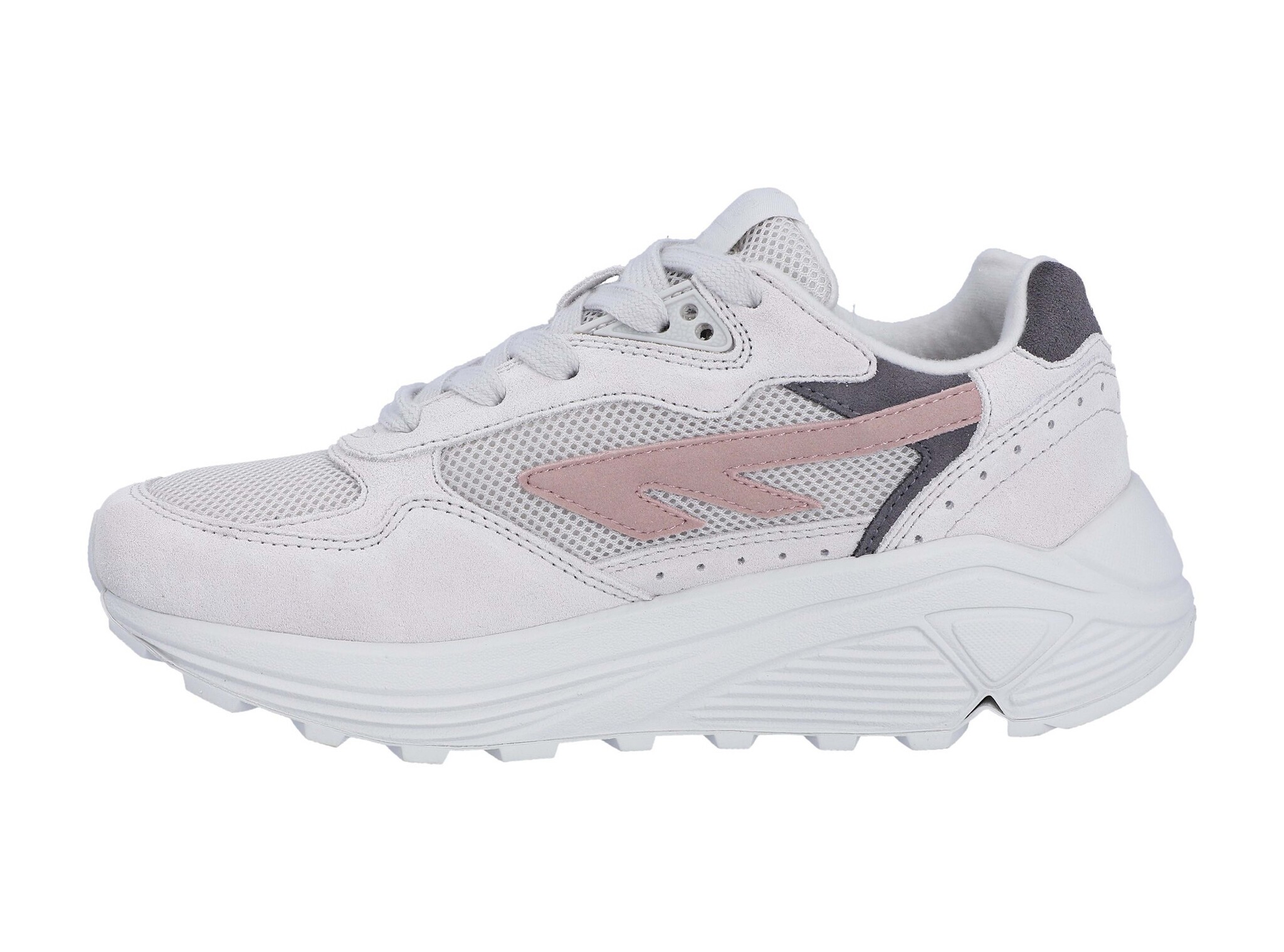 De Hi-Tec HTS Shadow RGS in Nimbus Cloud, Deauville Mauve en Thunder Storm combineert retro outdoor-invloeden met moderne performance-technologie. Het ademende mesh bovenwerk met suède overlays zorgt voor ondersteuning en duurzaamheid, terwijl de Vibram® Rolling Gait System (RGS) zool een natuurlijke afwikkeling van de voet stimuleert en langdurig comfort biedt. De mix van lichte grijstinten met zachte mauve-accenten geeft de sneaker een verfijnde maar technische uitstraling, ideaal voor zowel citywear als casual outdoor looks.