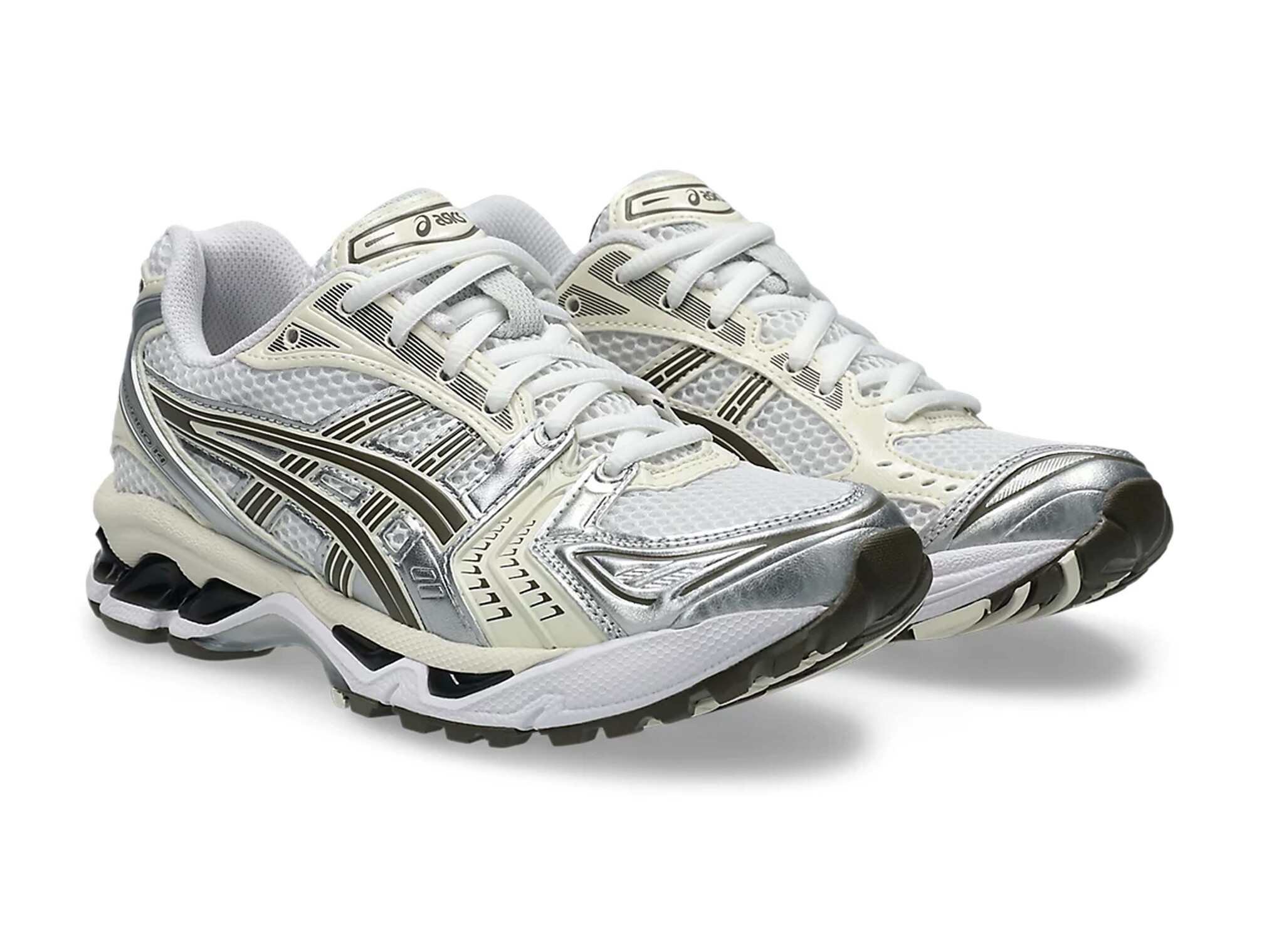De ASICS GEL-Kayano 14 in White en Ivory brengt een iconisch hardloopdesign uit de jaren 2000 naar het moderne streetwear landschap. Het ademende mesh bovenwerk met synthetische overlays zorgt voor ondersteuning en ventilatie, terwijl de kenmerkende GEL™-demping optimale schokabsorptie en langdurig comfort biedt. De combinatie van wit en ivoor geeft de sneaker een frisse, minimalistische uitstraling die eenvoudig te combineren is met zowel casual als sportieve outfits.