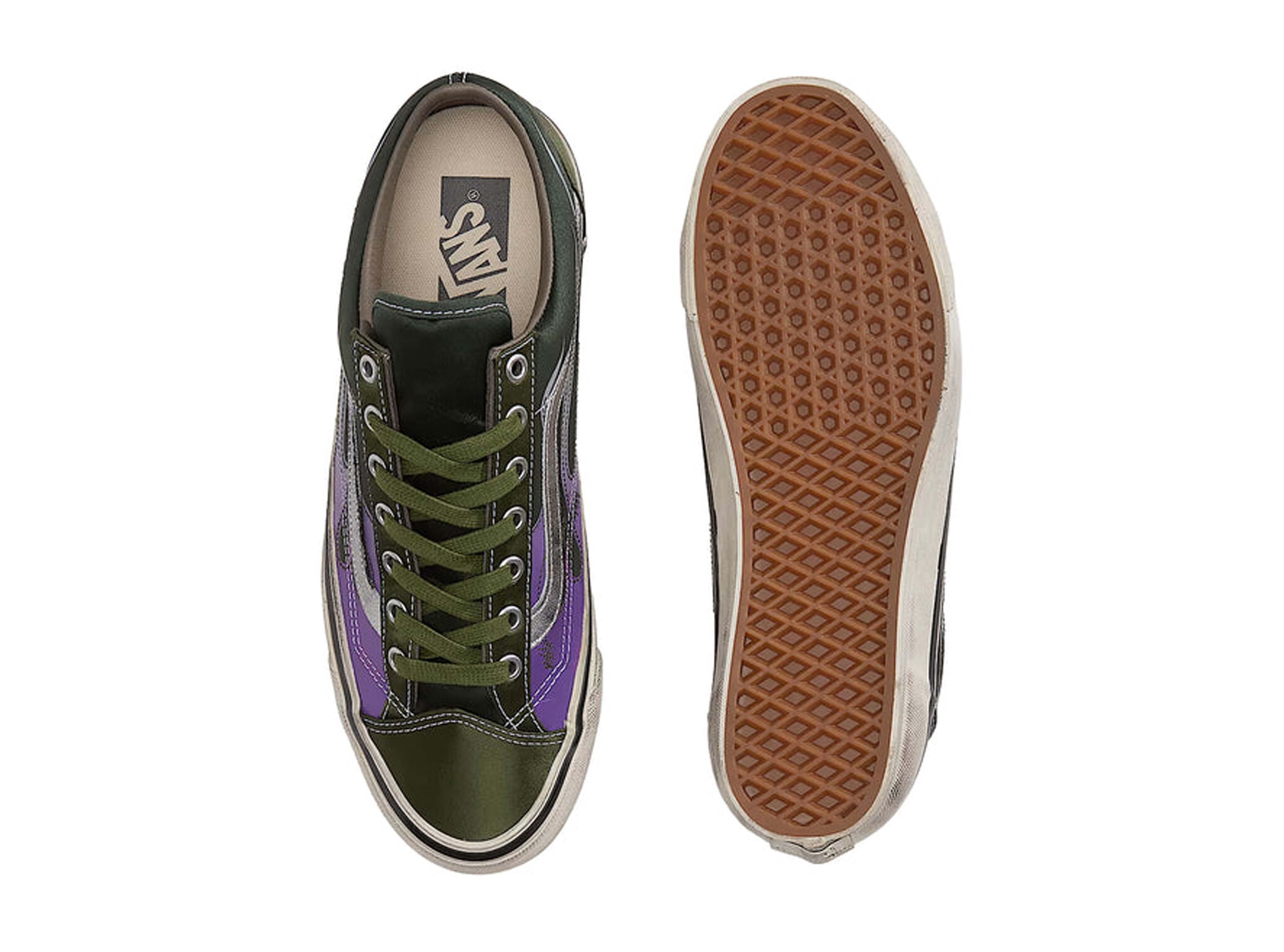 Productomschrijving: De Vans LX Old Skool 36 Archive Flame in Green Balsam is een gedurfde en premium interpretatie van een van de meest iconische silhouetten uit de skategeschiedenis. Oorspronkelijk gedebuteerd in 1977 als Style 36 en de eerste Vans sneaker met de legendarische Sidestripe, tilt deze LX editie het klassieke model naar een hoger niveau met bedrukt volnerf leer met een Archive Flame grafisch motief geworteld in de Hot-Rod en Custom Car cultuur van de jaren 1950. De diepe, aardse Green Balsam tint geeft de vlammenprent een rauwe en onderscheidende uitstraling die de rebelse energie van skatecultuur combineert met een rijke, natuurgeïnspireerde kleurstelling die moeiteloos opvalt. De constructie combineert 8 oz. canvas en koeienhuidsuède met een volnerf lederen kraagvoering en een gevoerde kraag voor een verfijnde, handschoenvormige pasvorm. De Sola Foam ADC binnenzool, vervaardigd uit minimaal 30% biobased PU foam, levert de hele dag demping en comfort. Een hoogglans zijwand eert de originele Osnaburg versterkte zolen van de jaren 1990, afgewerkt met de legendarische Vans wafel rubberen buitenzool voor betrouwbare grip. Een premium collector stuk voor mensen die de rebelse geest en rijke visuele geschiedenis van Vans waarderen.