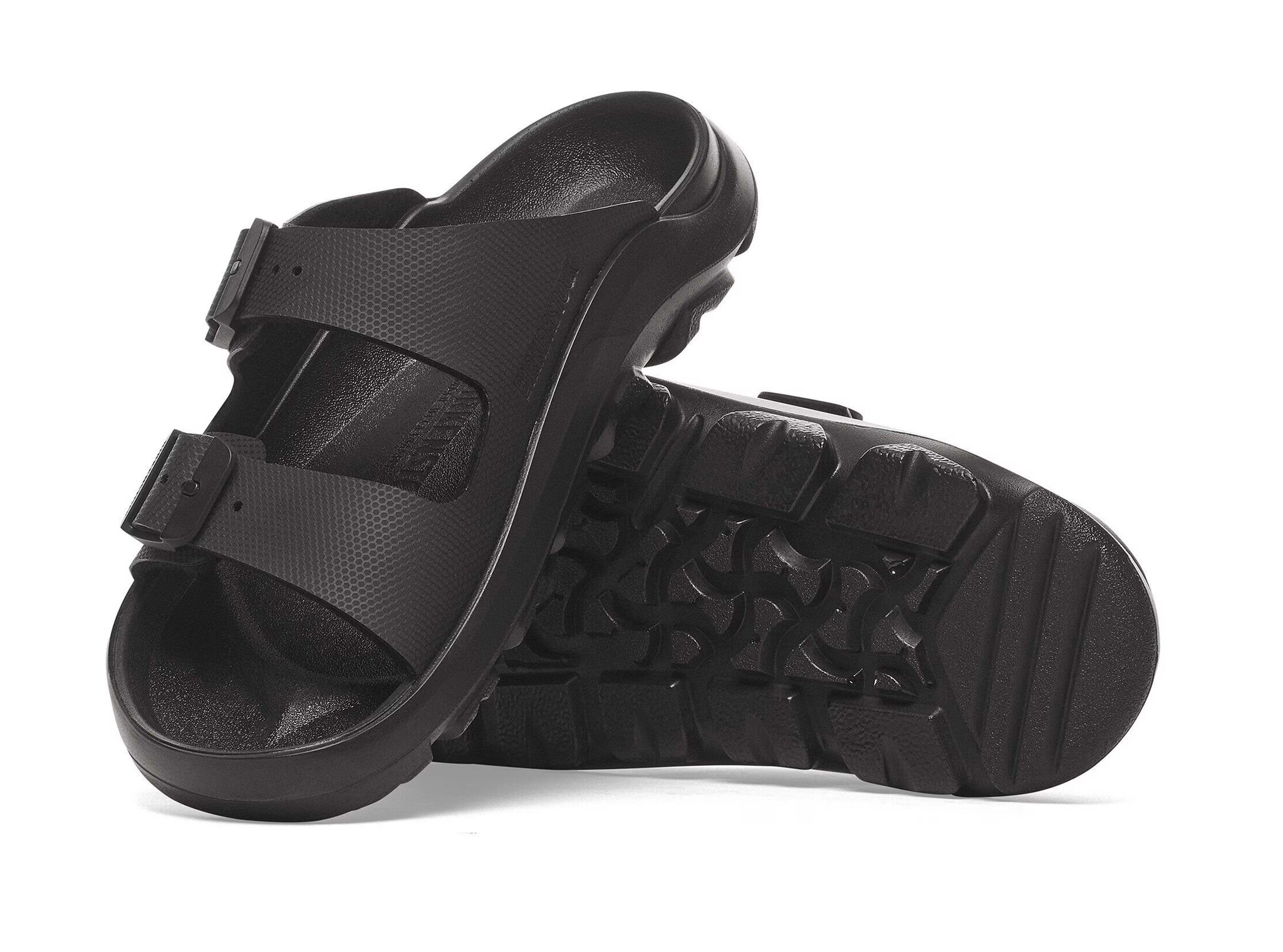 Productomschrijving: De Birkenstock Mogami Terra Stealth in Apex Black is een high-performance outdoorsandaal ontworpen voor avontuur op elk type terrein. Het waterafstotende, anatomisch gevormde PU-voetbed met teenbescherming houdt de voeten comfortabel en goed ondersteund — op paden, natte ondergronden en stadstraten. De tweelaagsige polyurethaan loopzool is direct ingefoamd op het voetbed en bovenwerk, wat zorgt voor uitzonderlijke flexibiliteit, grip en duurzaamheid. Twee verstelbare banden met de strakke Birkenstock Stealth-gespen bieden een nauwkeurige pasvorm en een strak, minimalistisch uiterlijk. Het Birko-Flor® bovenwerk is zacht, huidvriendelijk, eenvoudig schoon te maken en gebouwd om lang mee te gaan. Een veelzijdige unisex sandaal die outdoor-prestaties en dagelijks gebruik moeiteloos combineert — gemaakt in Duitsland.