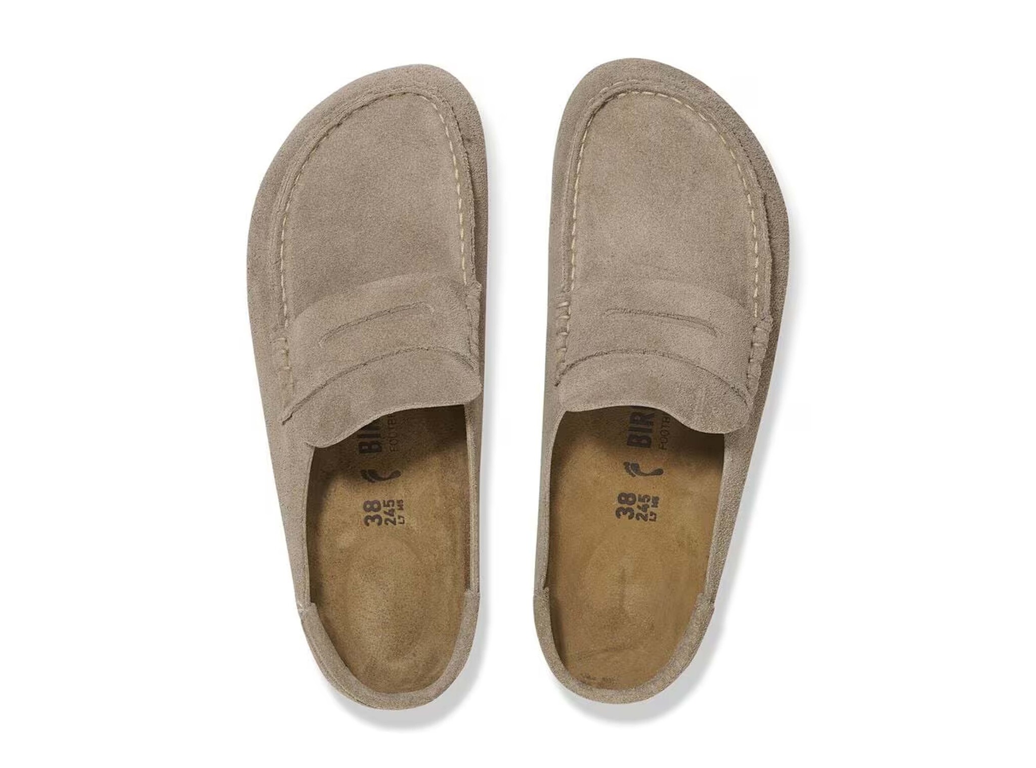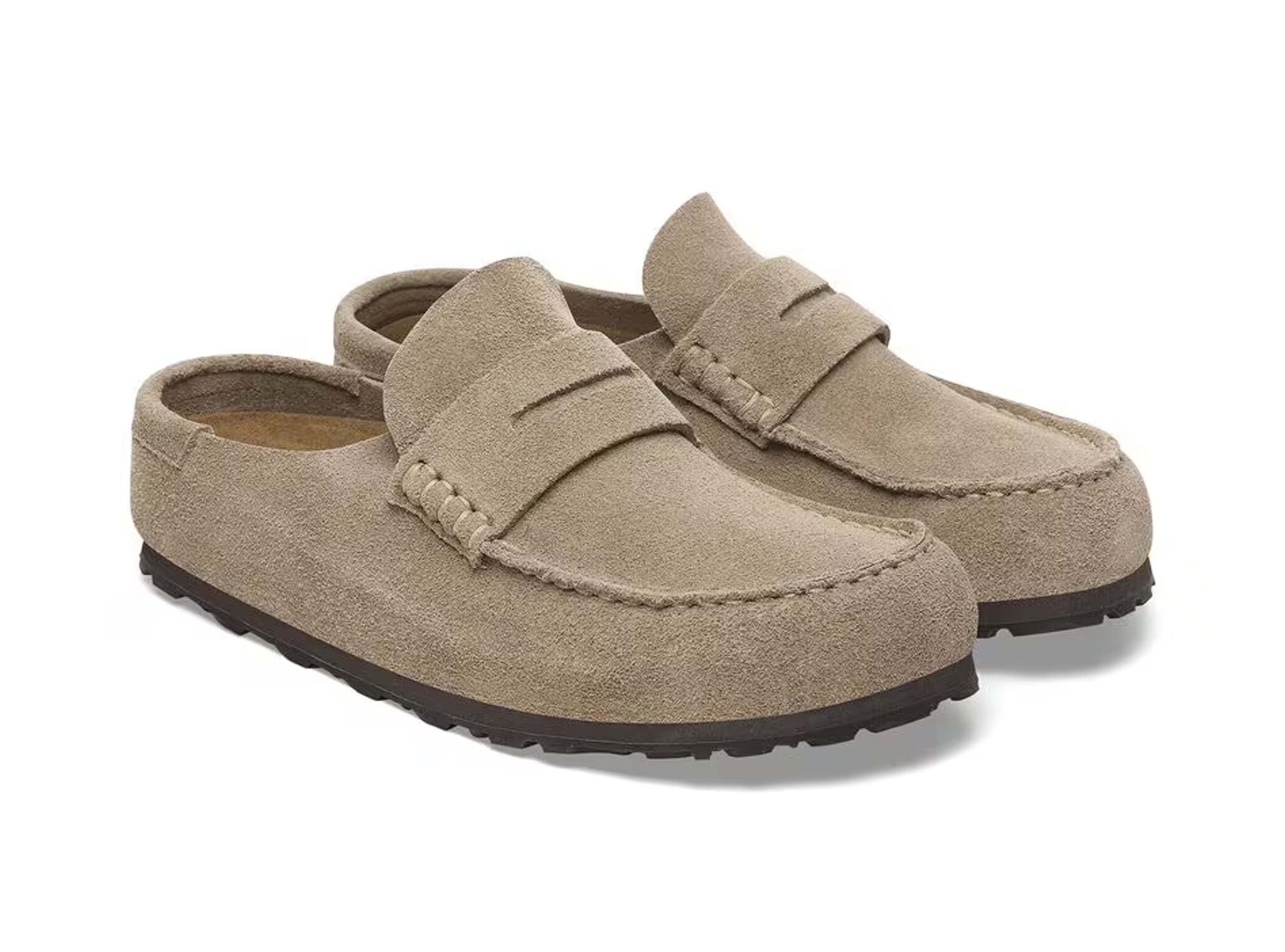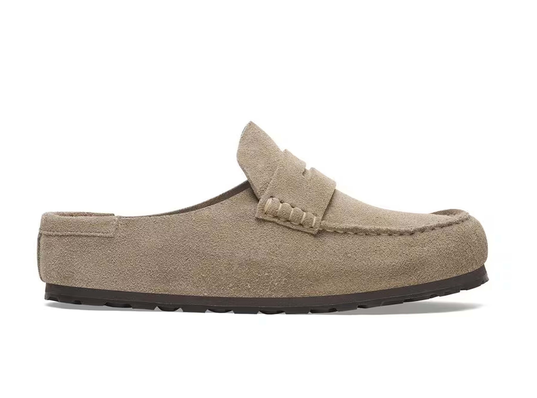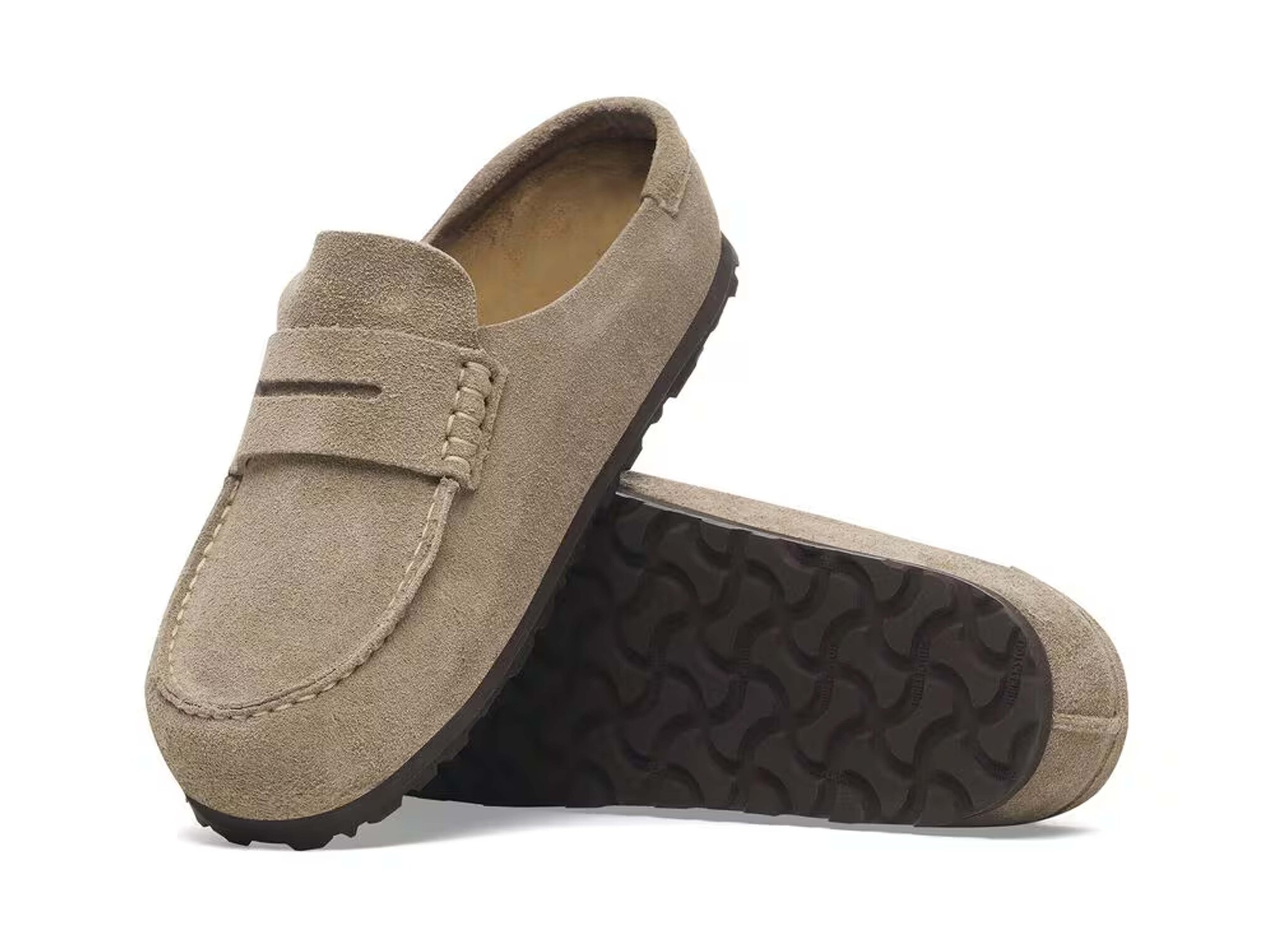 De Naples Wrapped in Taupe is de volledig gesloten versie van de populaire Buckley‑klomp, uitgevoerd in minimalistische moccasin-stijl met opvallende stiknaad. Het suède bovenwerk sluit de voet zachtjes als een tweede huid, ondersteund door een gevormd kurk‑latex voetbed met suède voering voor direct comfort. De tweedelige zool combineert een lichtgewicht EVA-middenzool met een robuuste rubberen loopzool, voor een stabiele en comfortabele pasvorm bij dagelijks gebruik, zowel binnen als buiten.