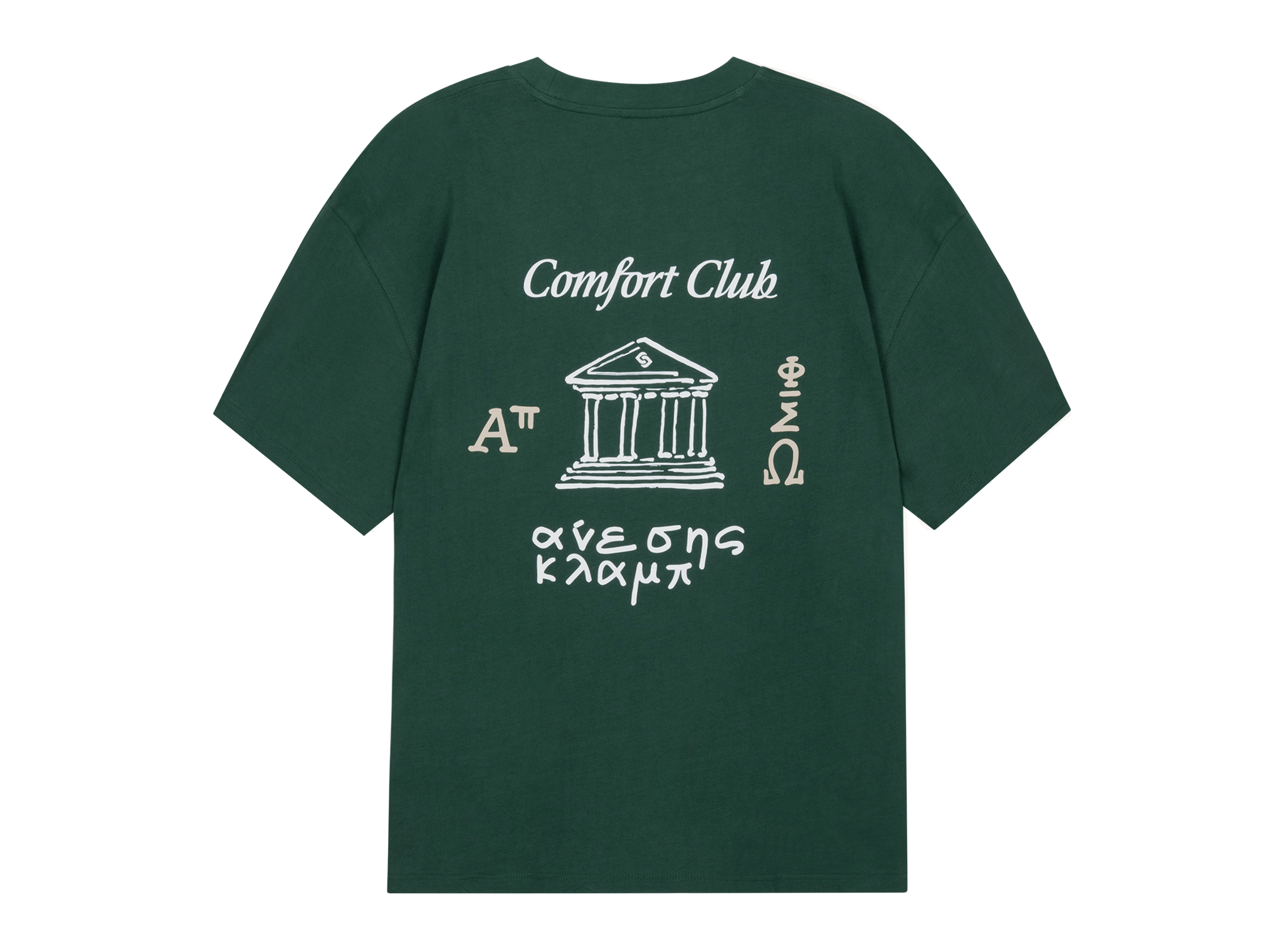 De Comfort Club Parthenon Tee in Rain Forest is een modern T-shirt met een verfijnde, artistieke uitstraling. Gemaakt van hoogwaardig katoen voor een zacht en comfortabel draaggevoel. De diepe groentint geeft het shirt een rijke en natuurlijke look, terwijl de Parthenon graphic zorgt voor een karaktervol accent. Perfect te combineren binnen zowel casual outfits als eigentijdse streetwear looks.