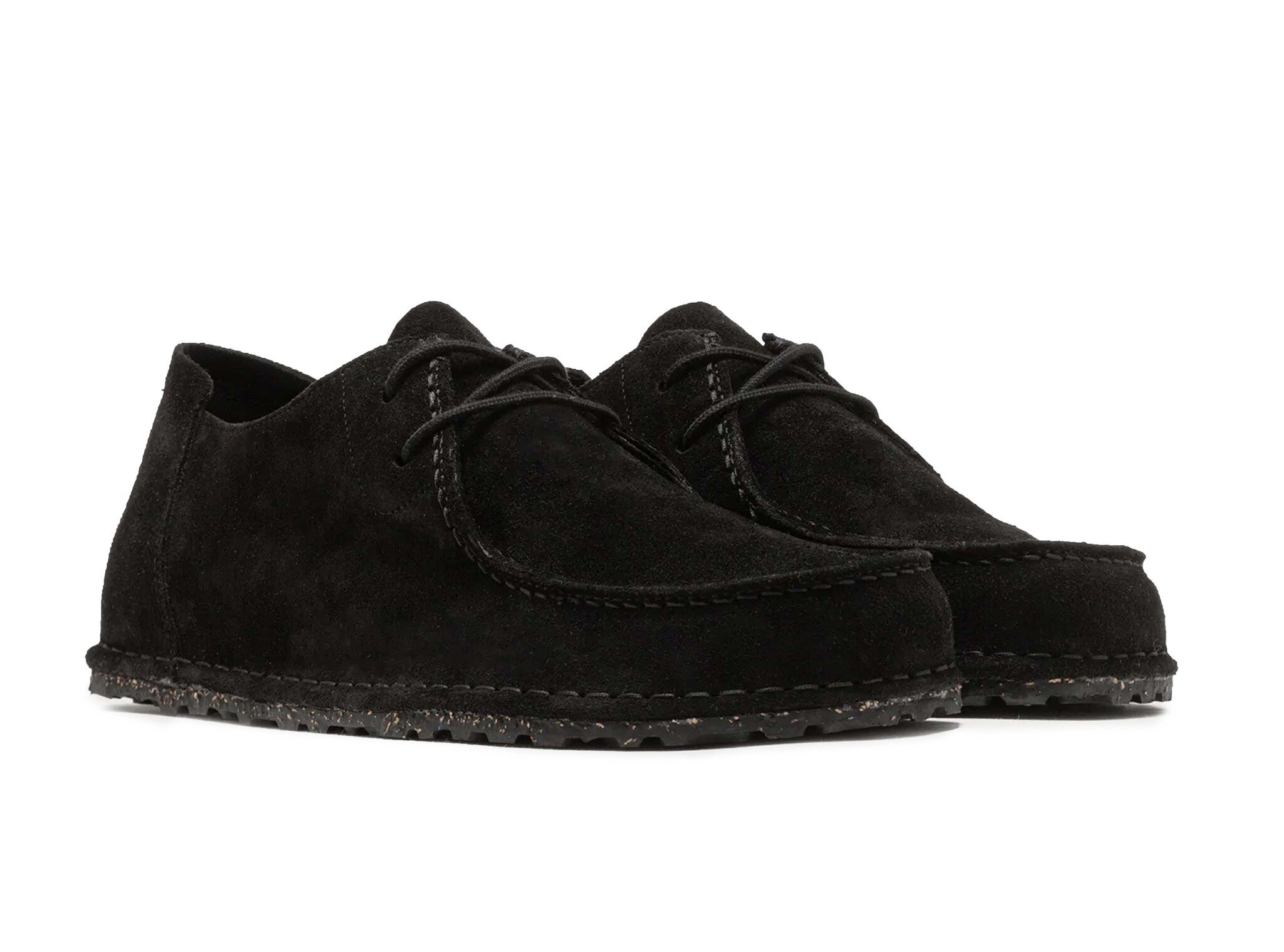 Productomschrijving: De Birkenstock Utti Lace in Black is een tijdloze mocassin geïnspireerde schoen die ingetogen elegantie combineert met de hele dag comfort in een veelzijdige reguliere pasvorm. Het zachte zwarte suède leren bovenwerk is voorzien van opvallend reliëfstiksel dat een verzorgd, ambachtelijk detail toevoegt aan het strakke silhouet. De ronde neus in mocassinstijl en de ronde vetersluiting geven de schoen een uitstraling die moeiteloos de overgang maakt van casual naar smart casual. De zachte hielstrop maakt het aan en uittrekken volledig moeiteloos. Van binnen biedt het uitneembare BIRKENSTOCK Deep Blue voetbed, anatomisch gevormd uit een kurk en latexmengsel, uitstekende voetboogondersteuning en vormt zich geleidelijk naar de natuurlijke contouren van de voet. De vochtafvoerende microvezel voering houdt de voeten de hele dag fris en comfortabel. De natuurlijke kurk en rubbermix buitenzool biedt betrouwbare grip en duurzaamheid. Een veelzijdige unisex dagelijkse schoen gebouwd op Birkenstocks erfgoed van comfort sinds 1774, gemaakt in Portugal.