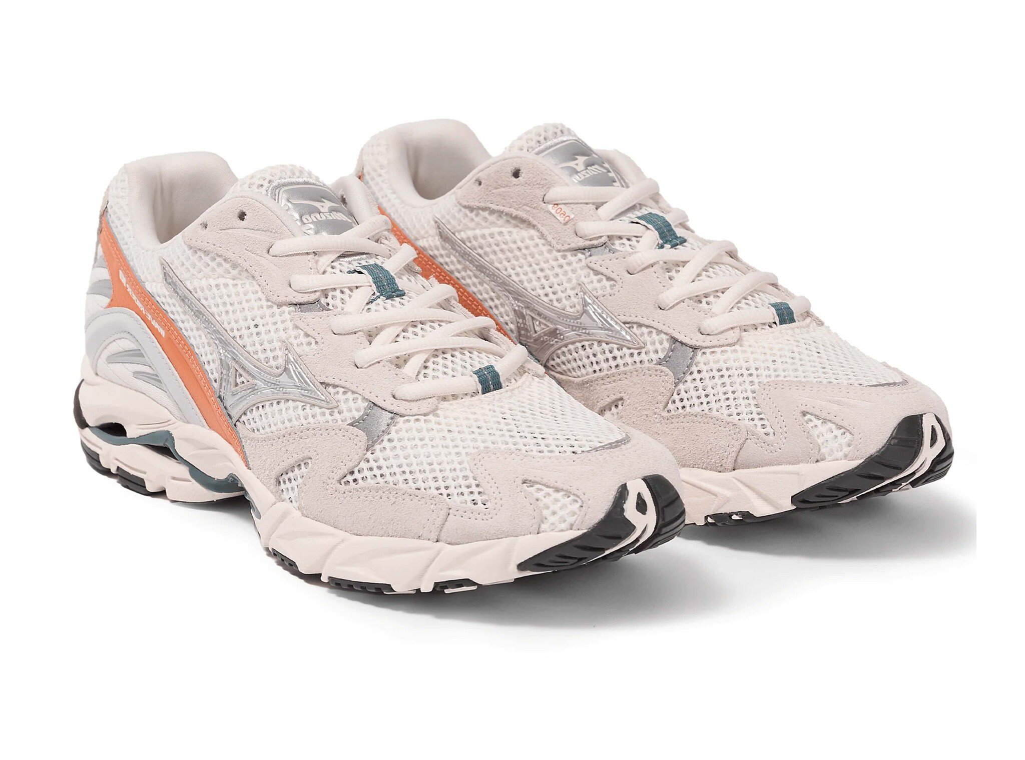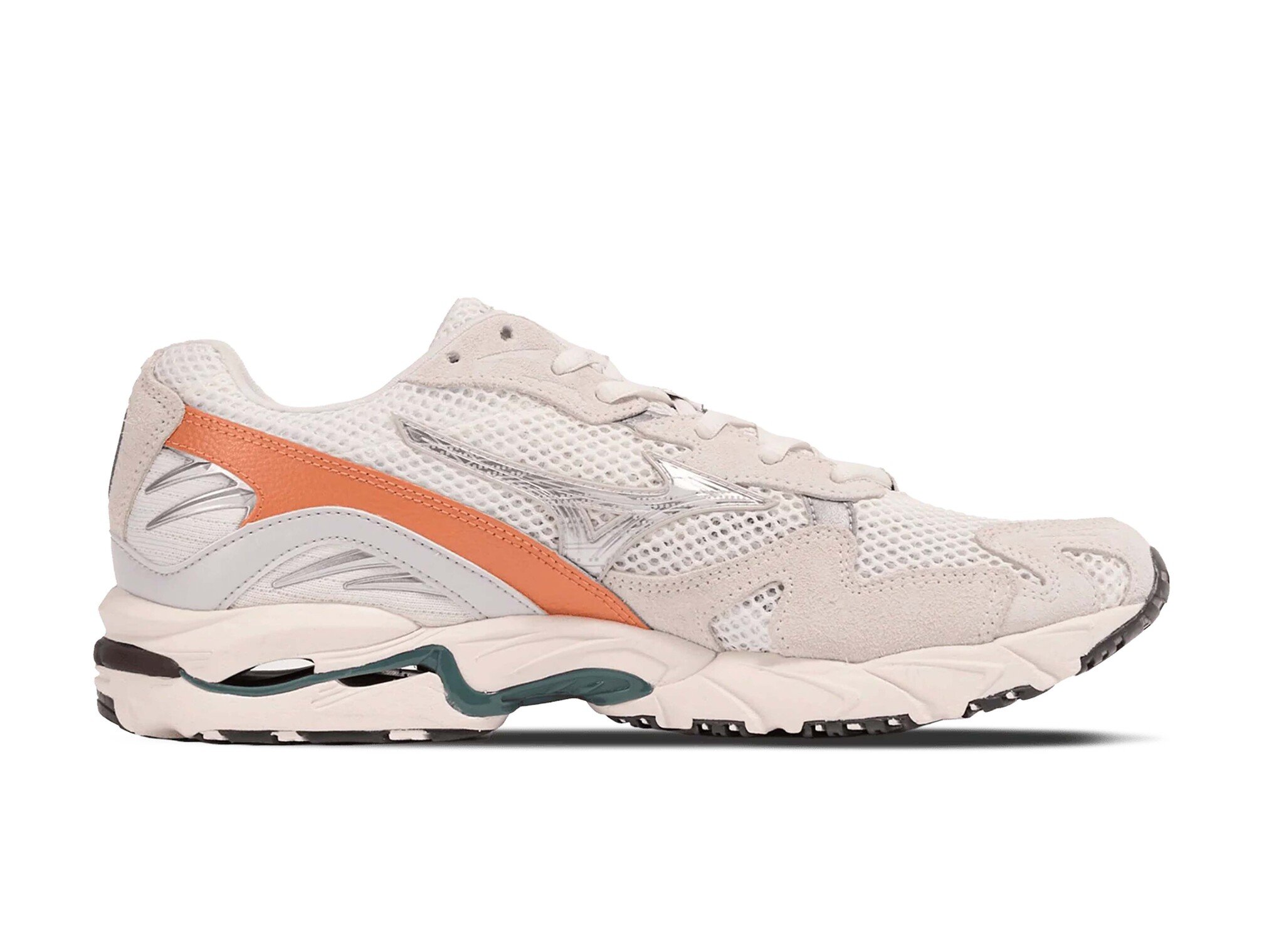 De Mizuno Wave Rider 10 in Snow White, Dawn Blue en Sun Baked combineert een klassiek hardloopdesign uit de jaren 2000 met moderne demping. Het ademende mesh bovenwerk met synthetische overlays biedt ventilatie en ondersteuning, terwijl de kenmerkende Mizuno Wave-technologie zorgt voor stabiliteit en schokabsorptie. De frisse witte basis met blauwe en warme accenten geeft de sneaker een sportieve en dynamische uitstraling, perfect voor zowel casual als streetwear outfits.